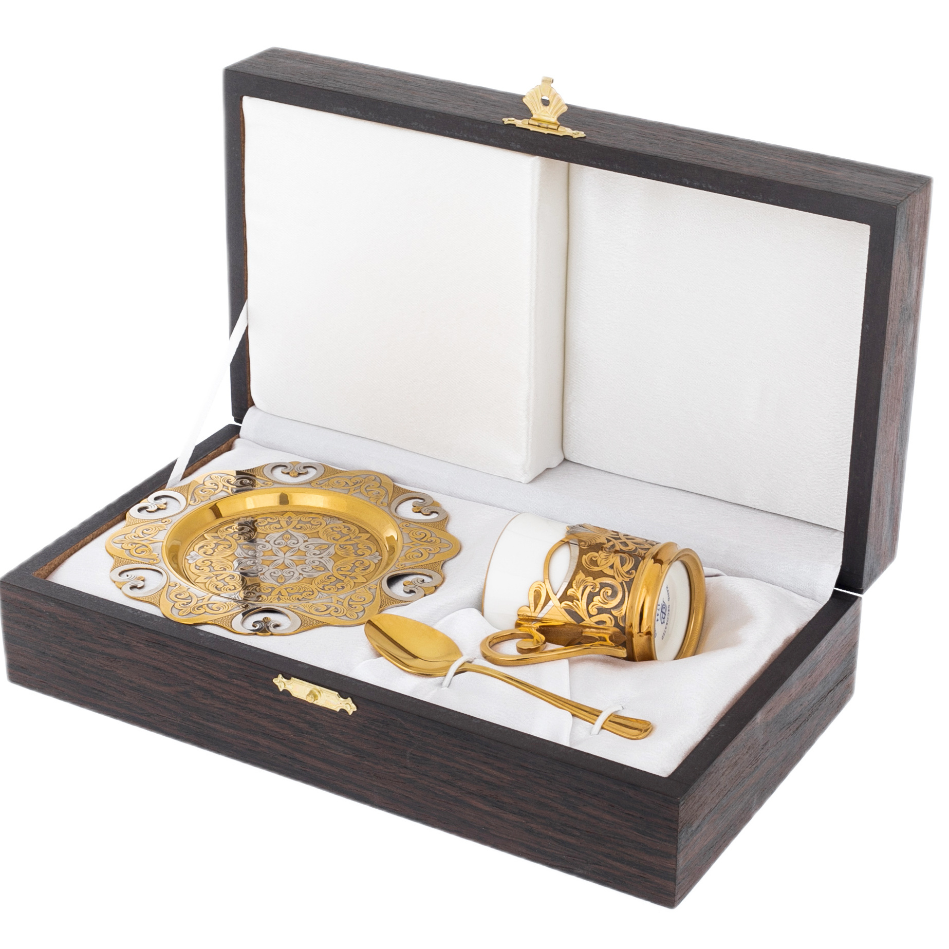 Этот набор предназначен для утончённых ценителей роскоши, привыкших окружать себя вещами с характером и душой. Он украсит кабинеты и гостиные, станет достойным спутником торжественного приёма или камерного разговора за чашкой крепкого кофе. В его линиях звучит спокойная уверенность, в оттенках — сила вкуса, в материале — благородство. Это не просто сервиз, а послание миру о статусе, эстетике и любви к настоящей красоте.