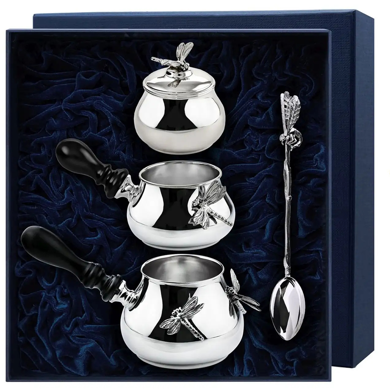 Серебряный набор для кофе "Стрекоза": ложка, турка, сливочник, сахарница