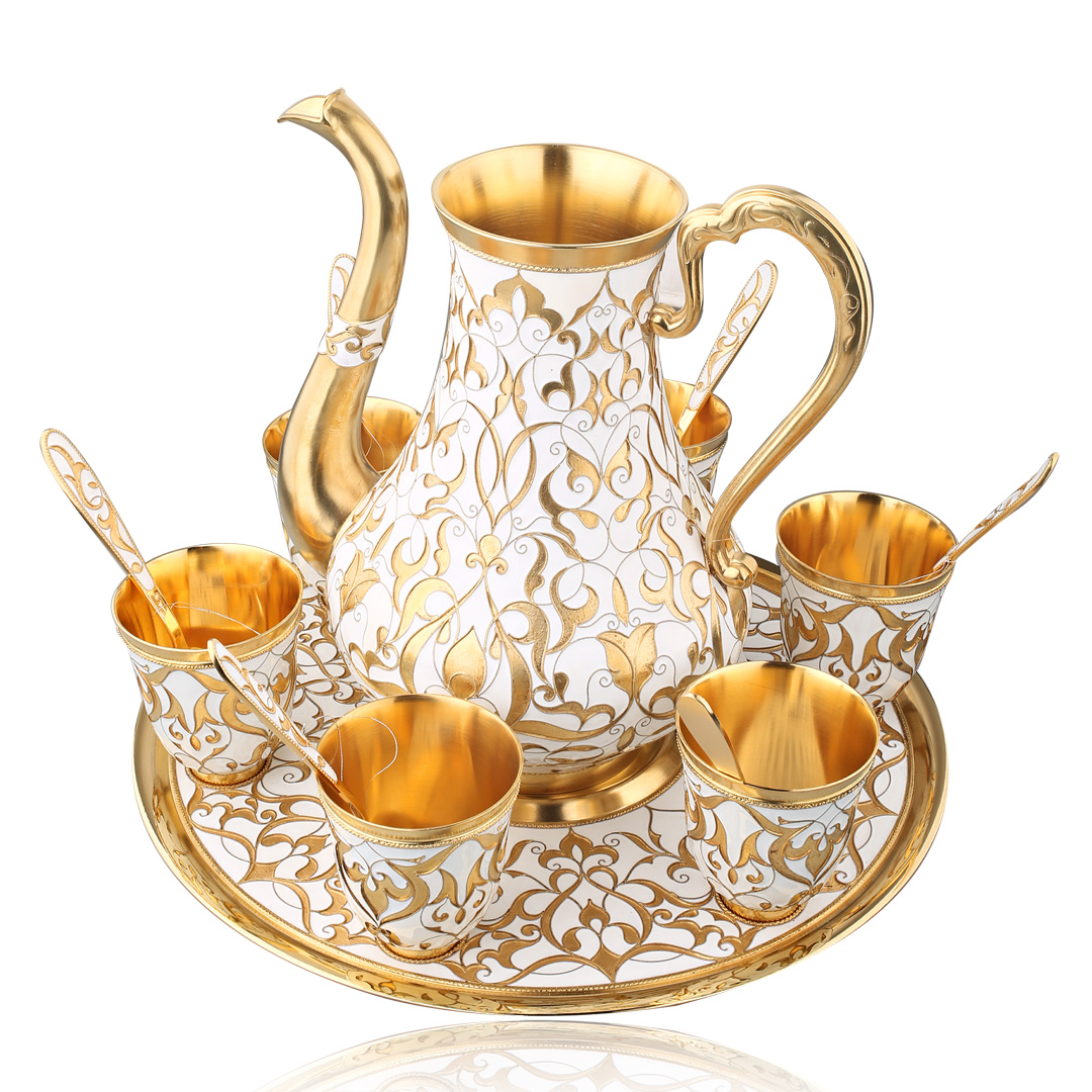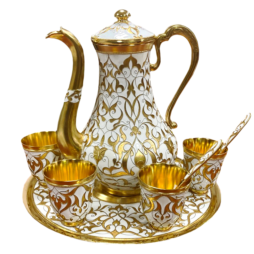 Комплектация:кофейник, поднос, ложки кофейные, чашки.