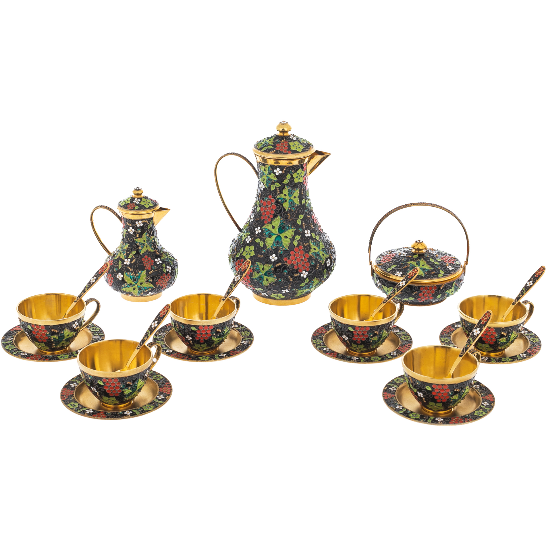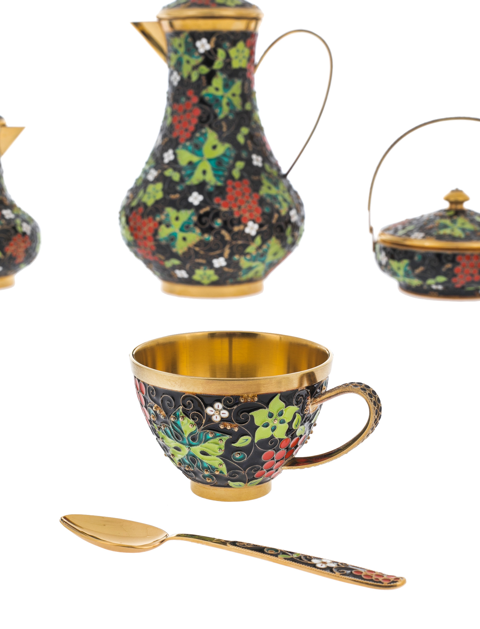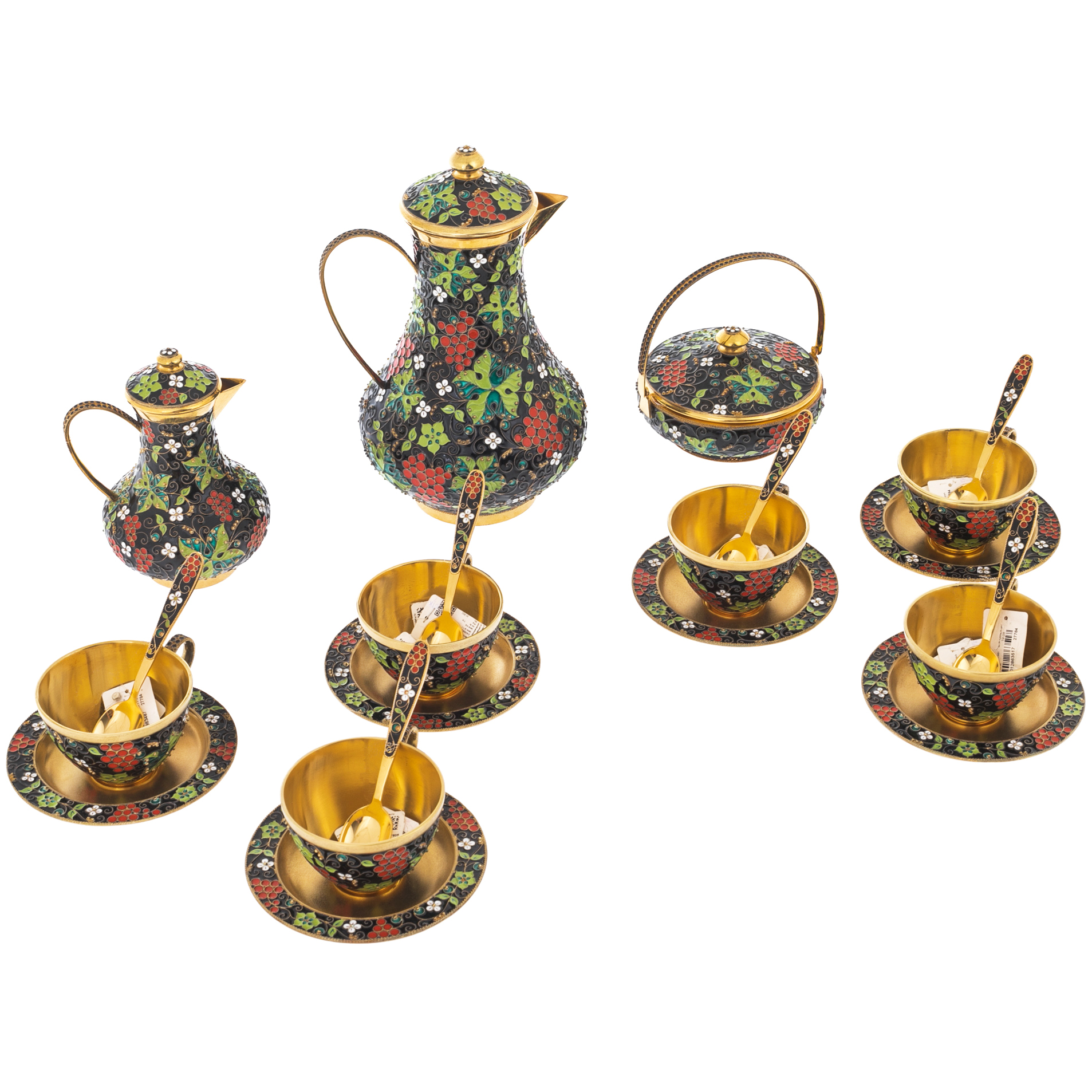 Сервиз кофейный серебряный "Ягодный" на 6 персон