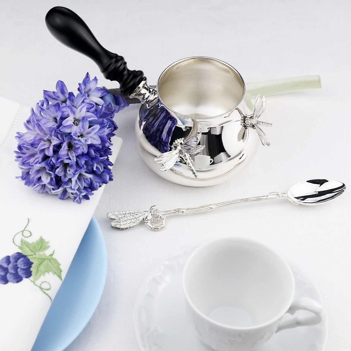 Серебряный набор для кофе "Стрекоза": ложка, турка, на 1 персону