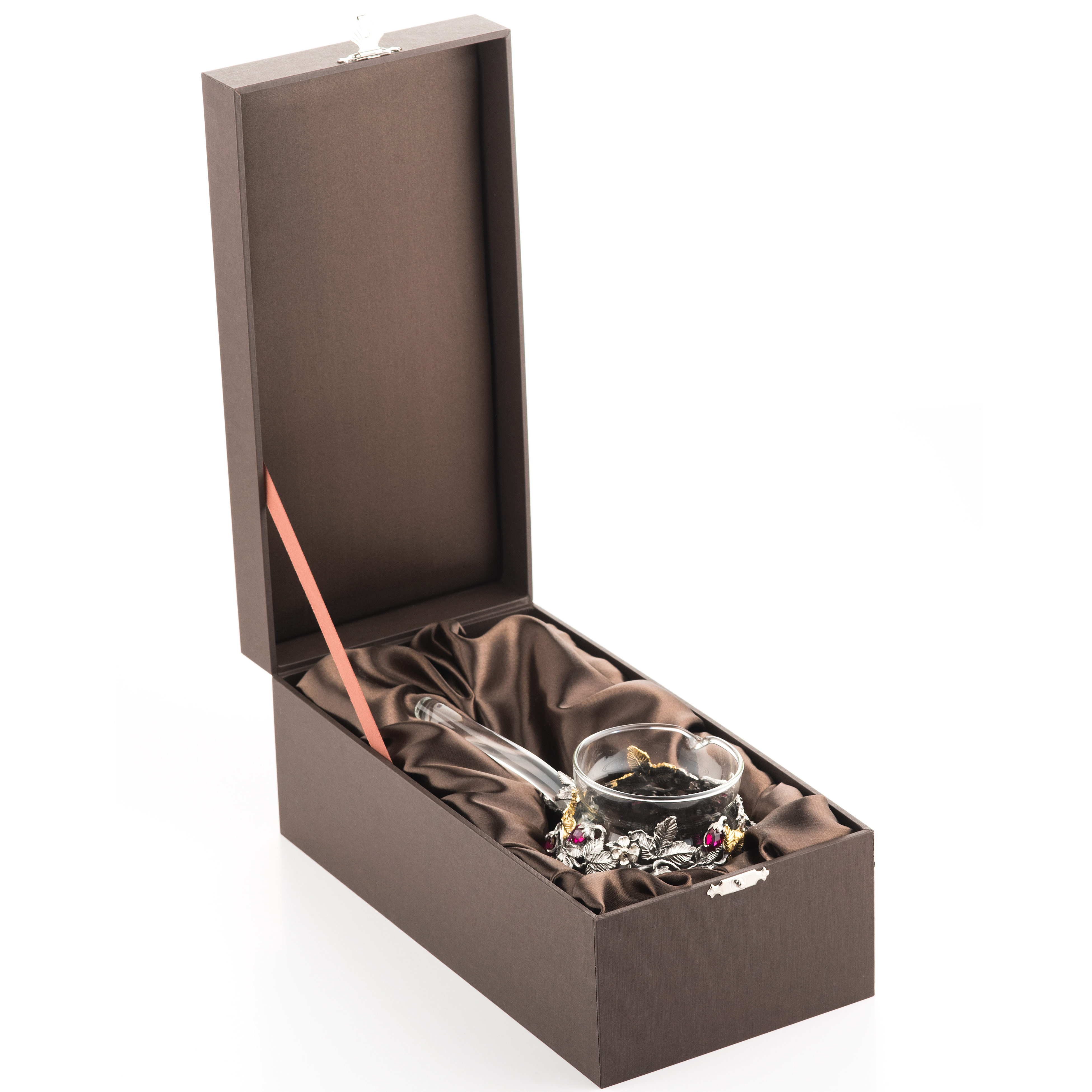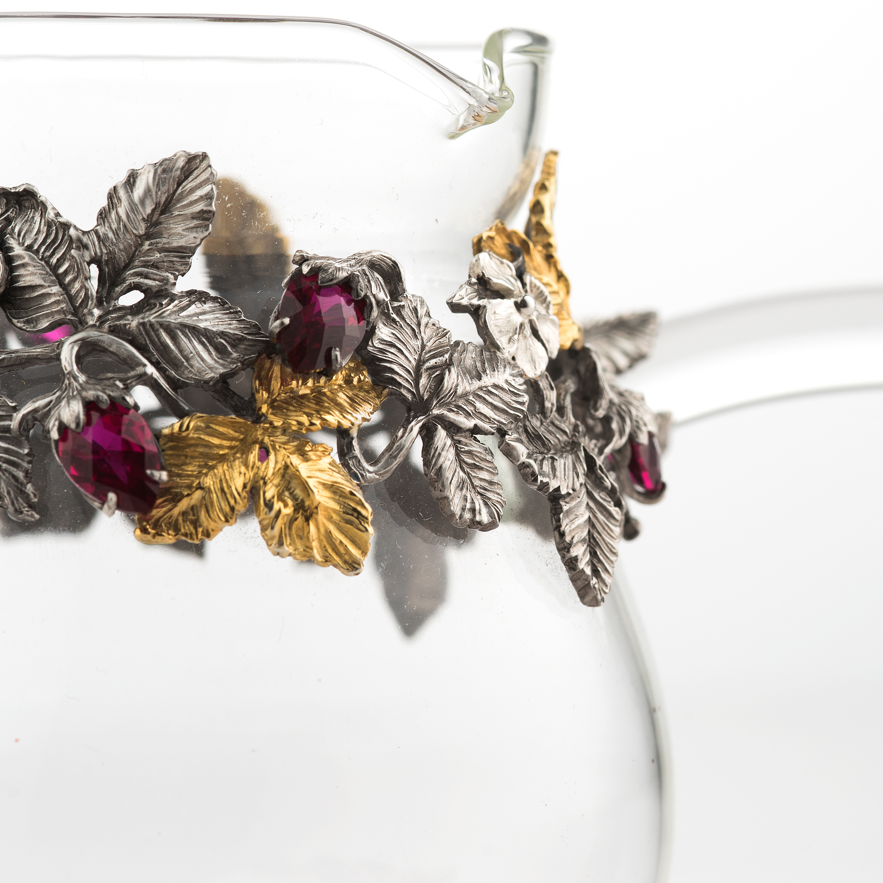 Турка стеклянная с обрамлением серебром и вставками из корунд-рубинов "Земляника"