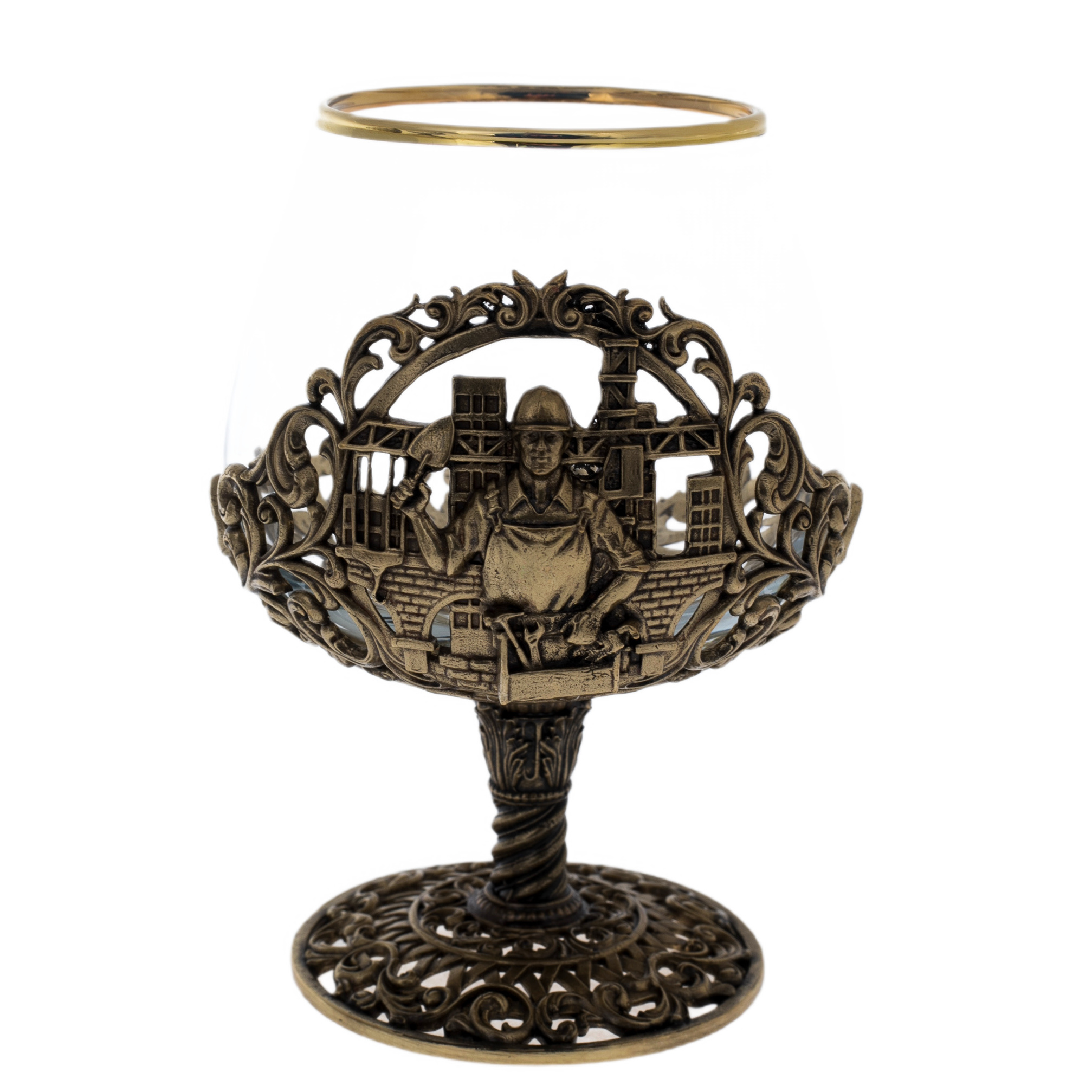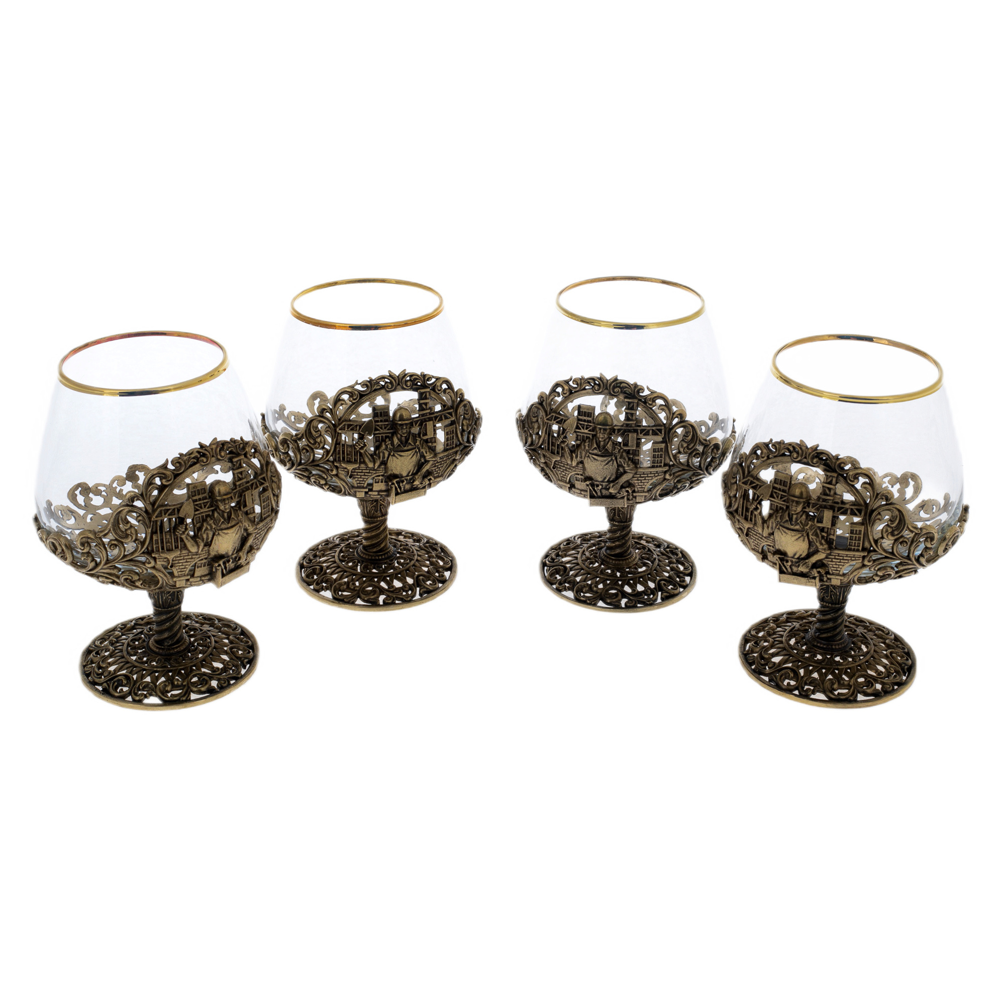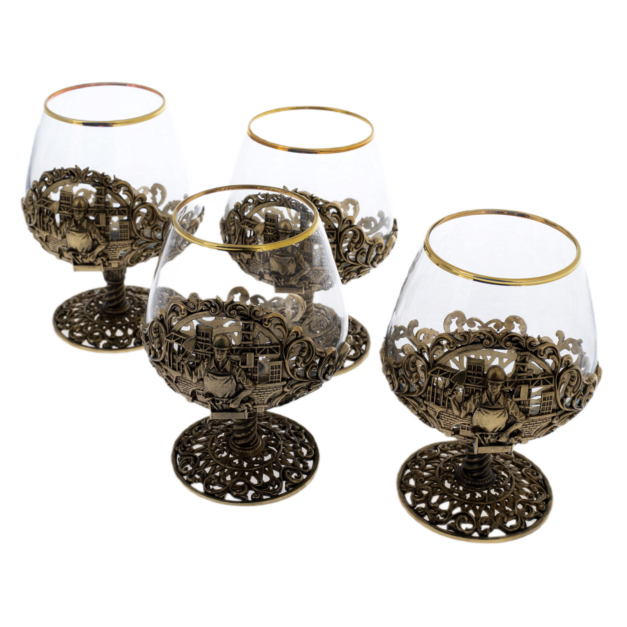 Набор бокалов для коньяка "Строитель" на 4 персоны, в кожаном футляре