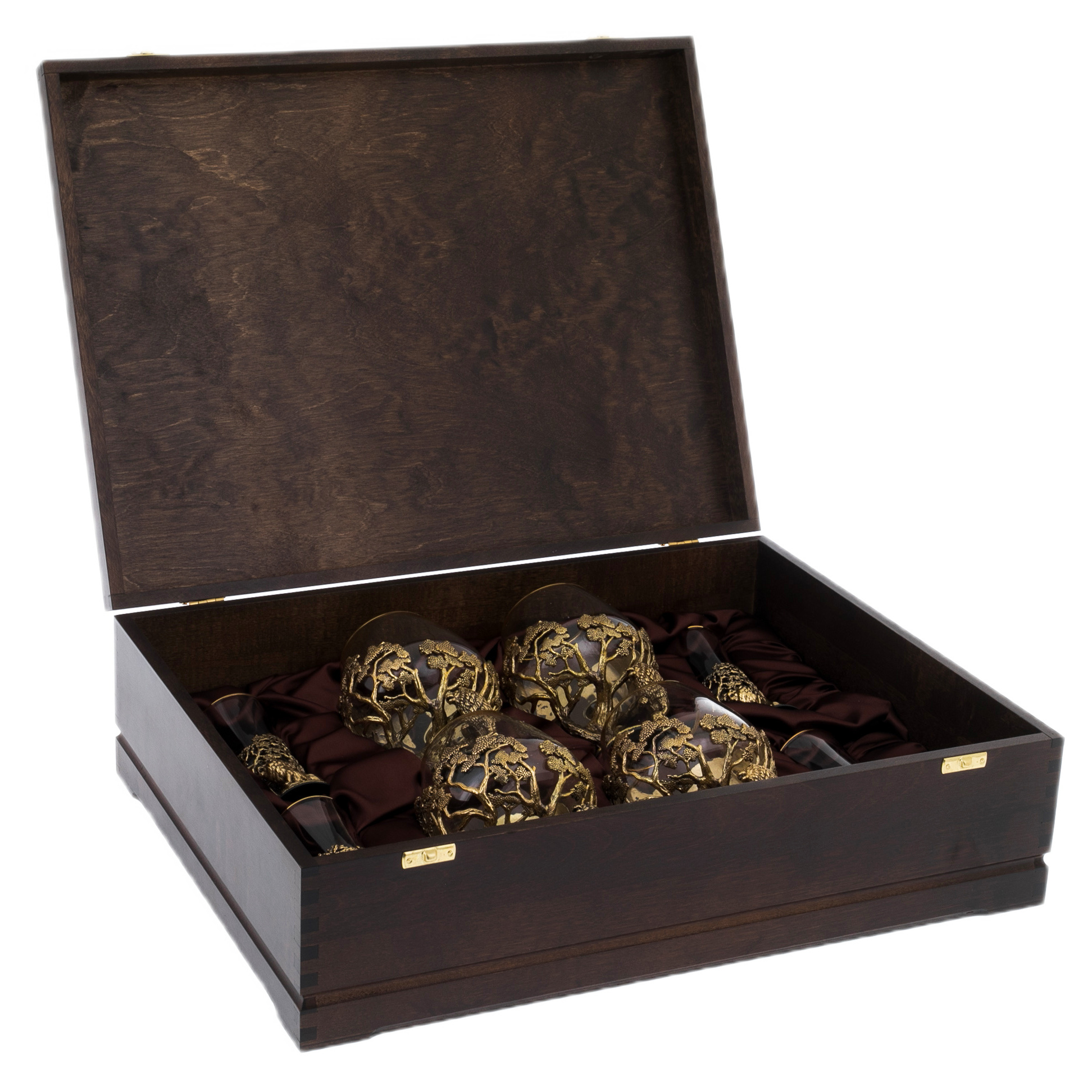Комплектация: 4 бокала, 4 стопки, шкатулка.