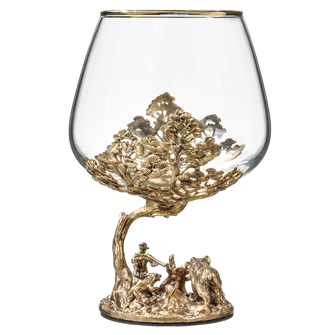 Каждое основание бокалов выполнено с непревзойденной точностью и деталями: медведи, словно олицетворяющие дикую мощь природы, с интересом рассматривают окружающий мир, а золотые листья на фоне становятся символом роскоши и элегантности. Золотая отделка подчеркивает высокое качество и уникальность набора, создавая атмосферу, подходящую для ценителей статуса и утонченных вкусов.