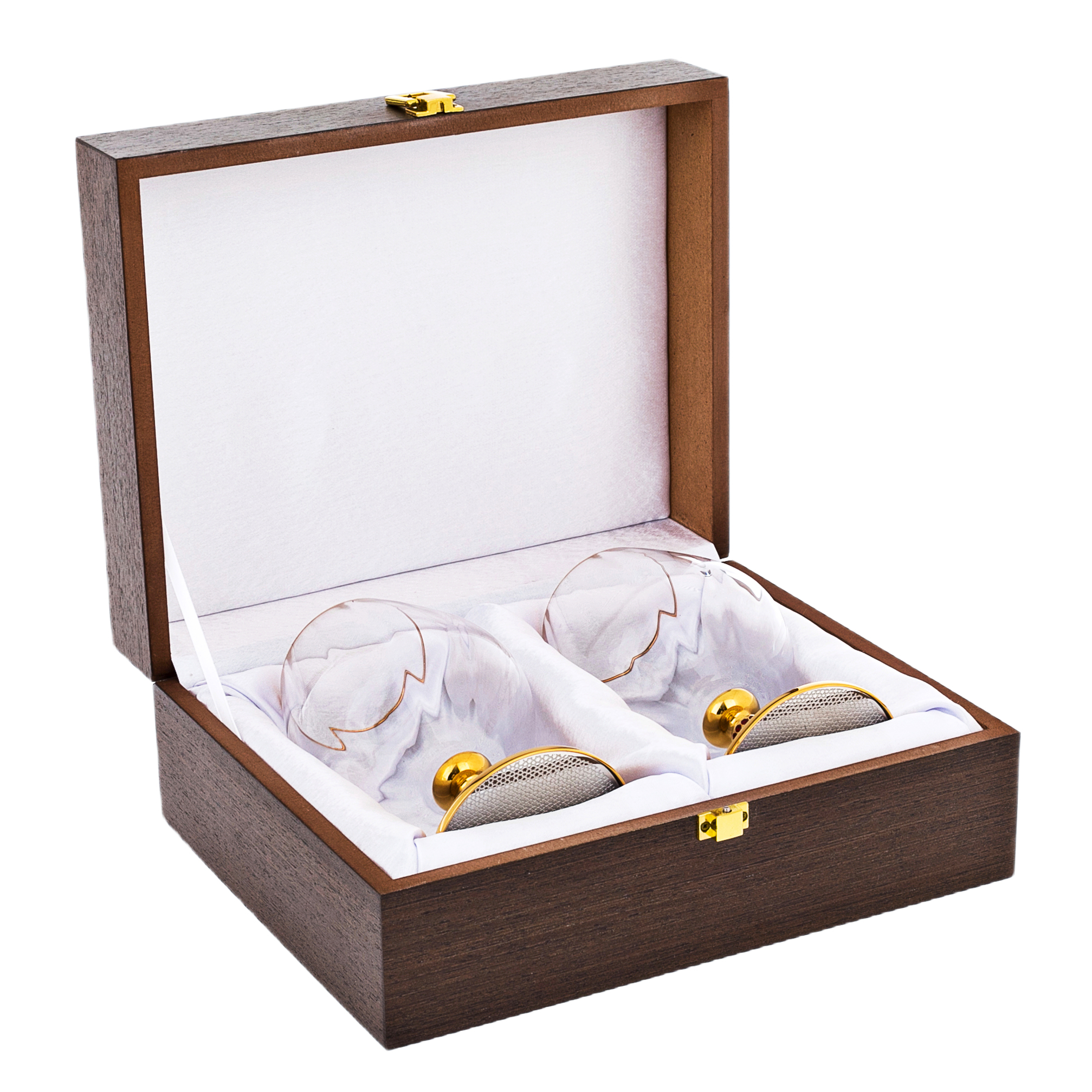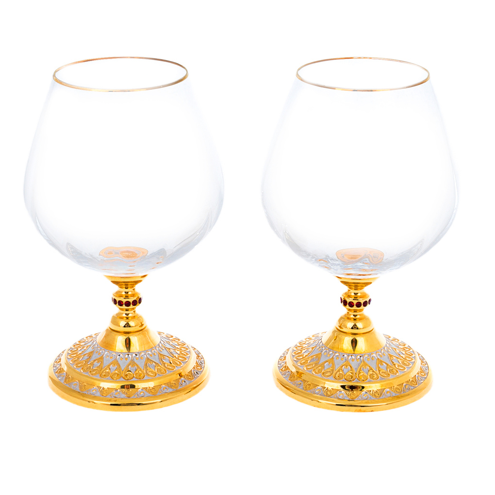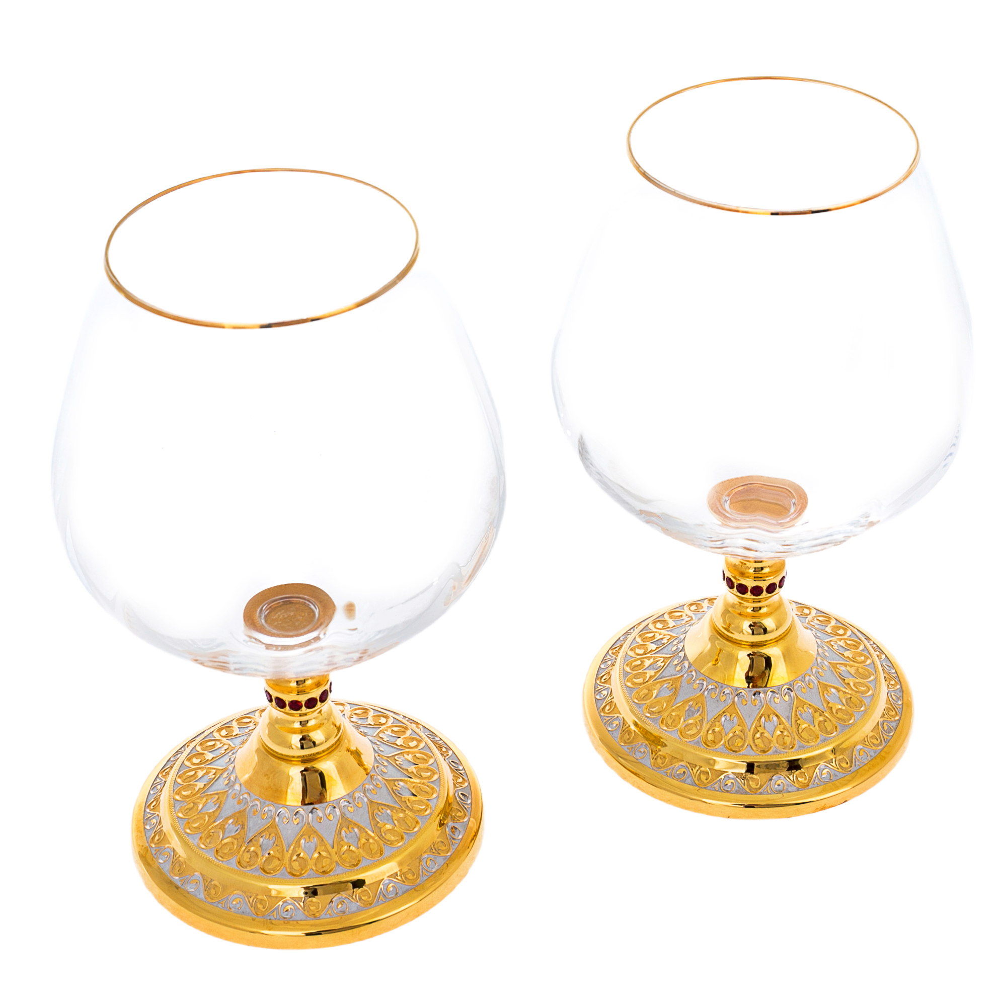 Набор бокалов для коньяка с красным фианитом, на 2 персоны