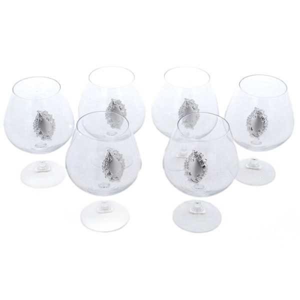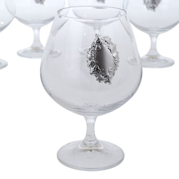 Набор бокалов для коньяка "Виноград" с посеребрением, на 6 персон