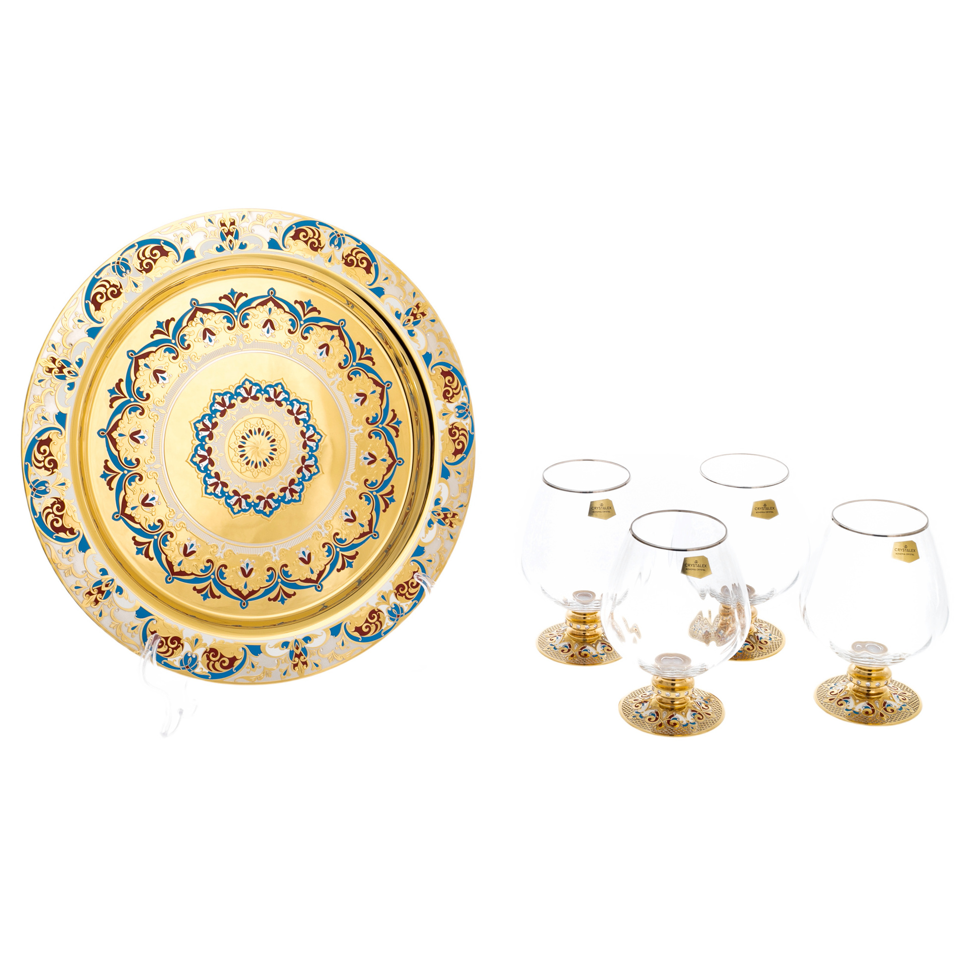 Набор для коньяка на блюде "Букет" на 4 персоны, Златоуст