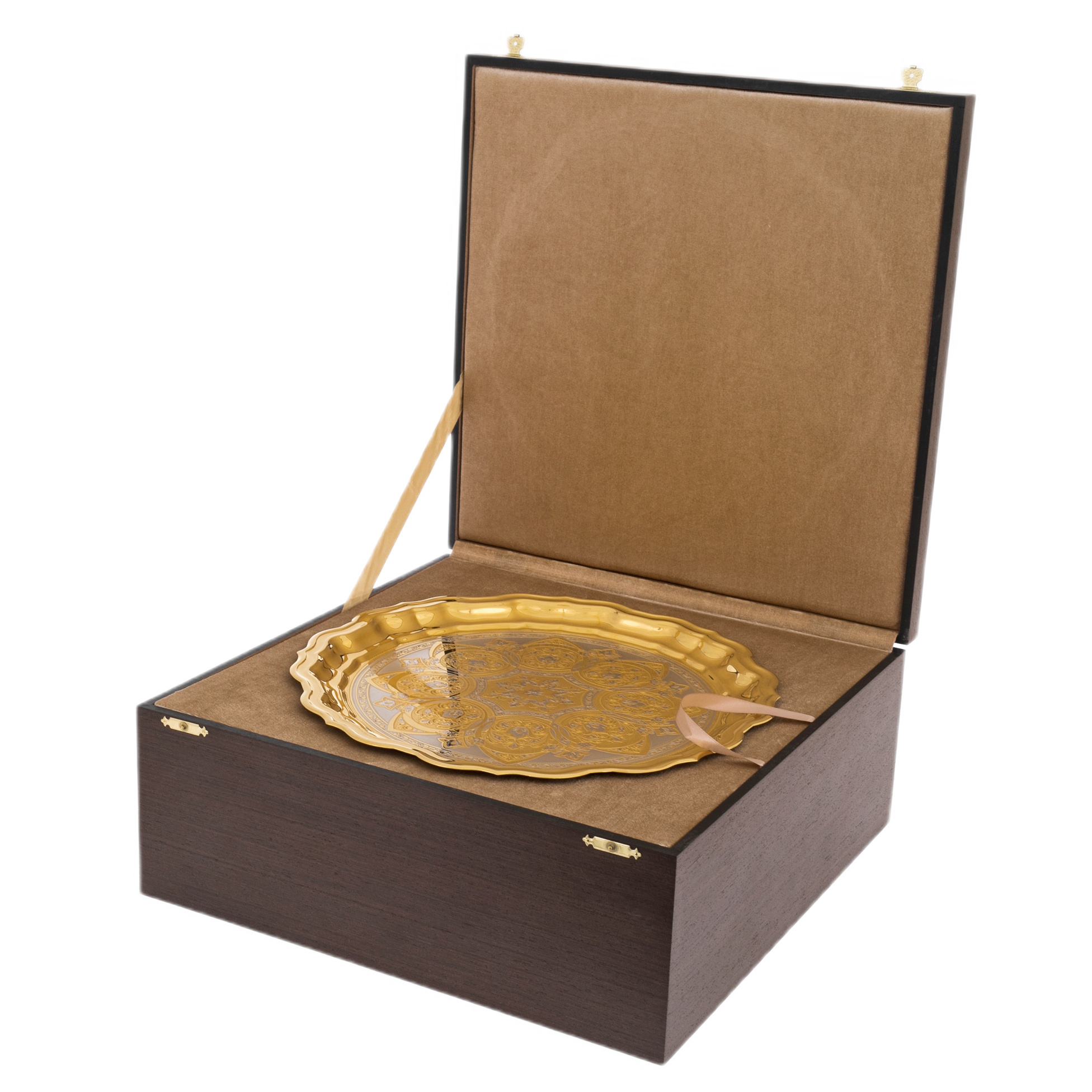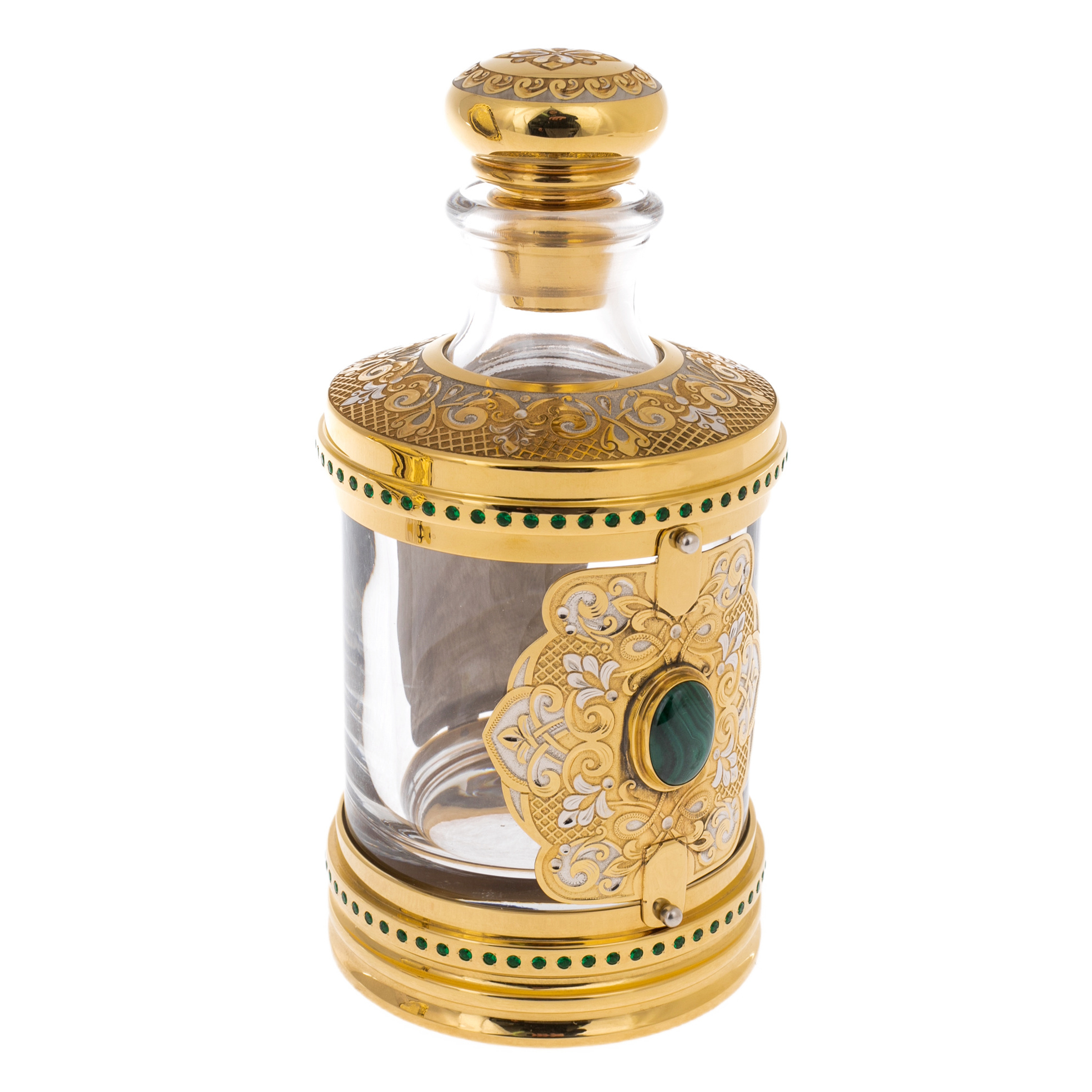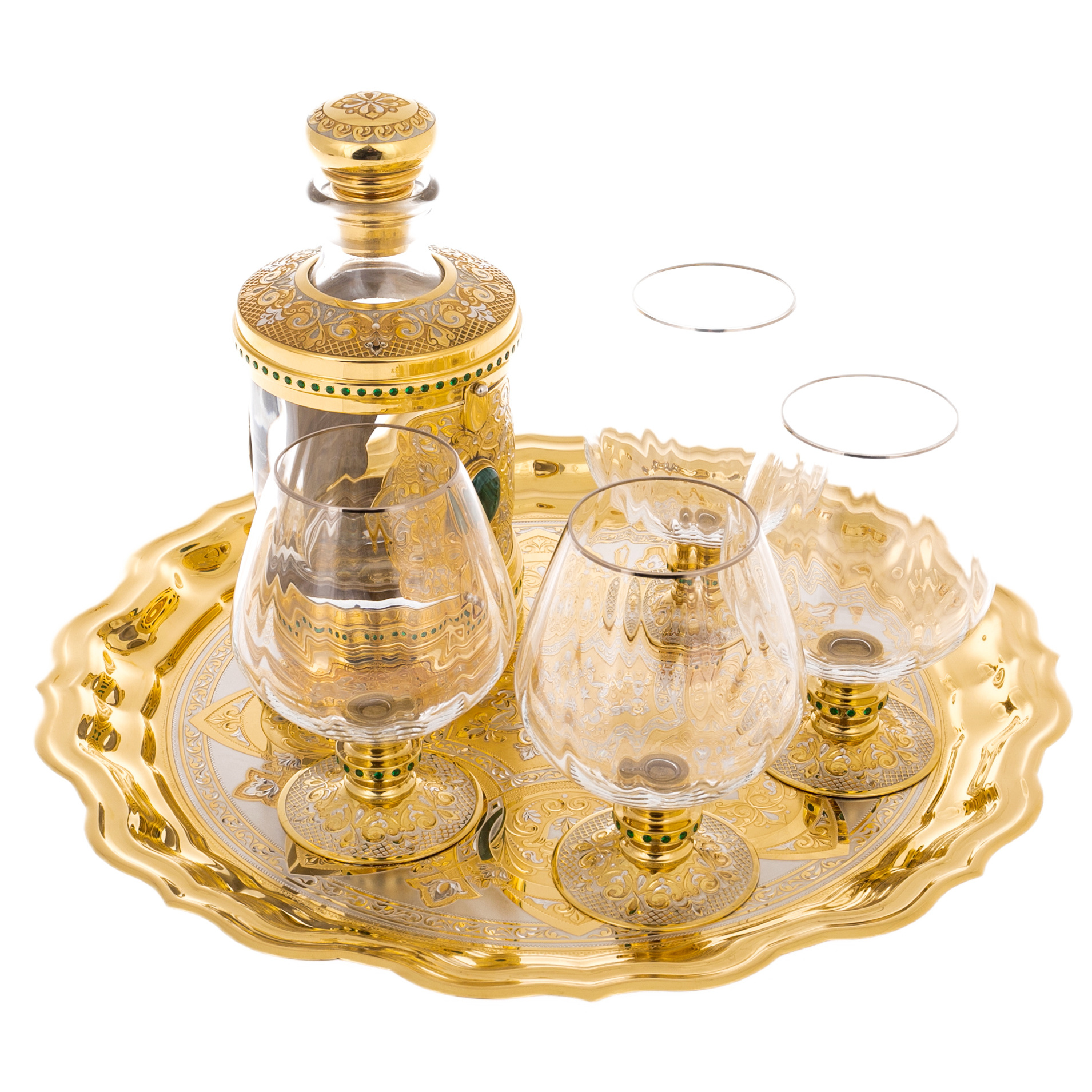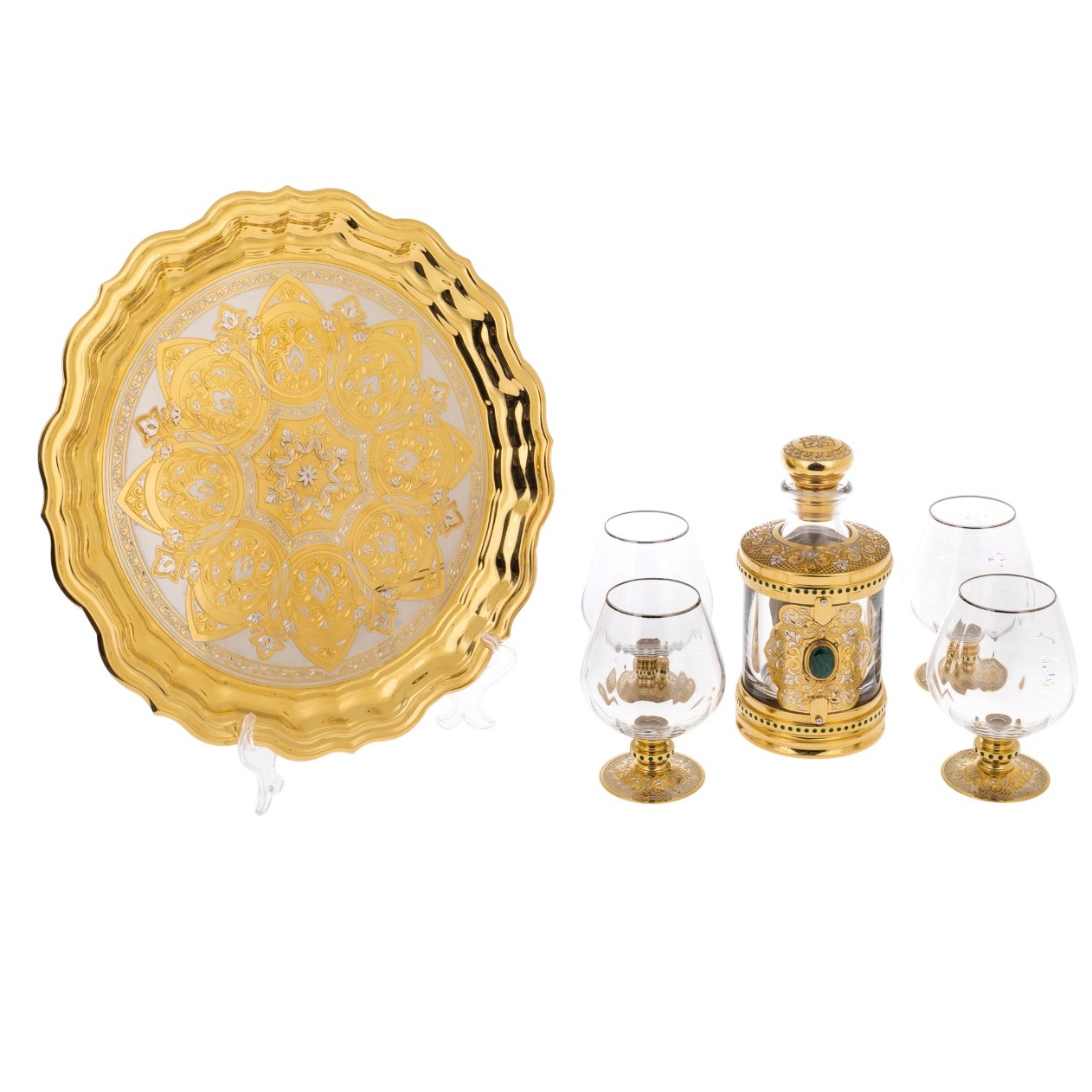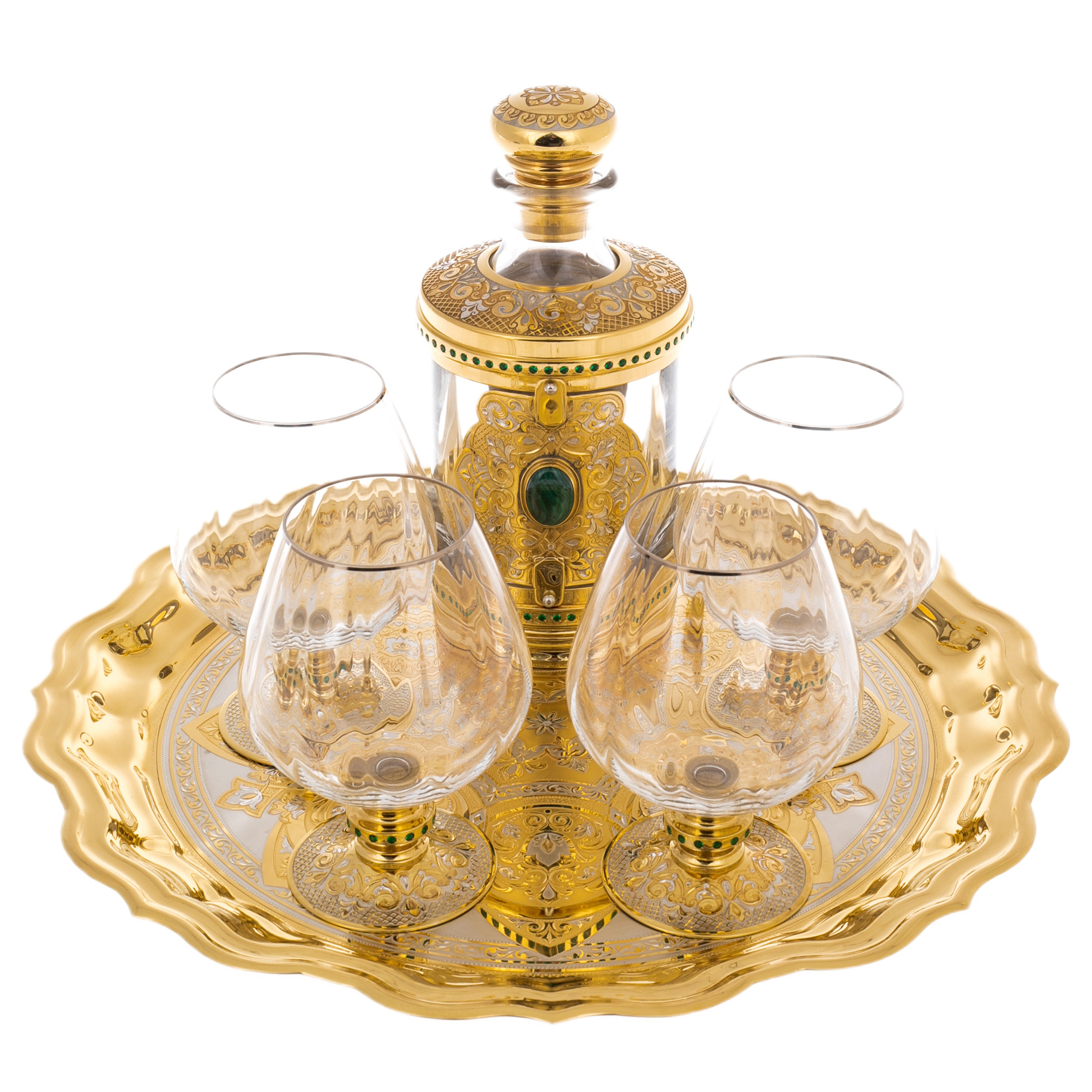 Набор для коньяка со штофом на блюде "Величие" на 4 персоны, малахит, Златоуст