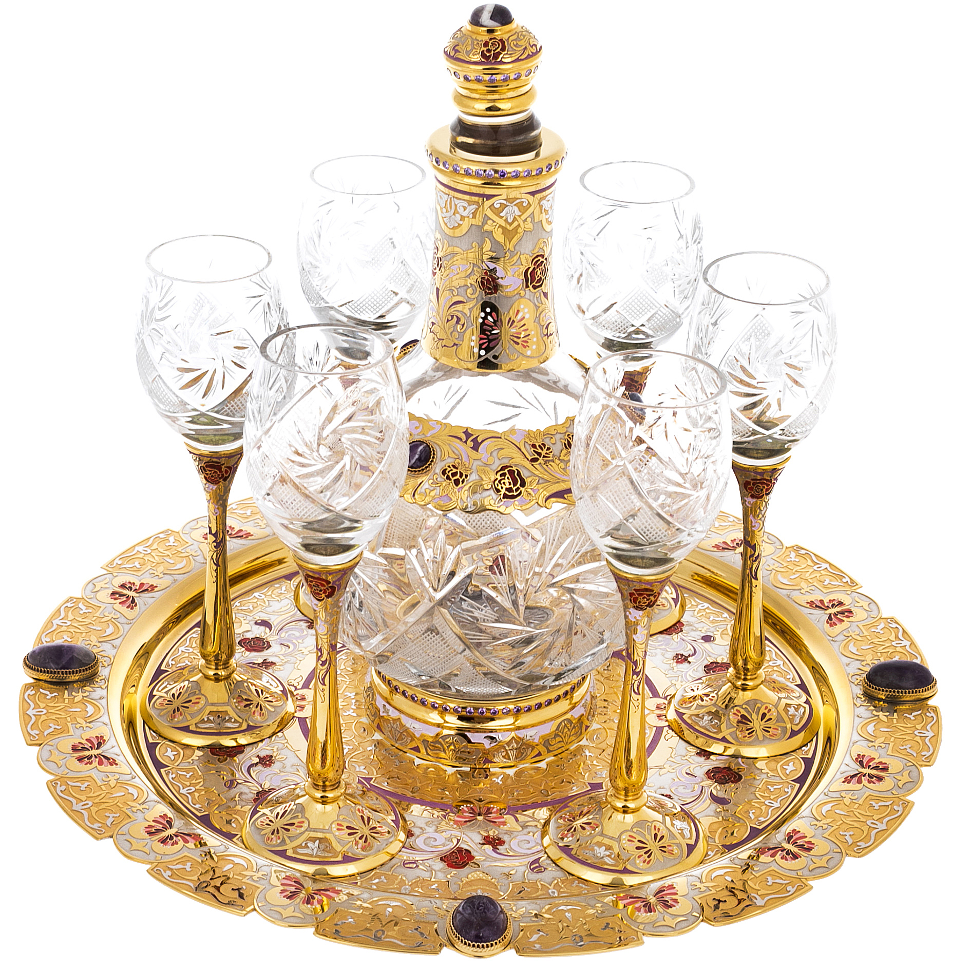 Коллекции изящной посуды от мастеров из Златоуста эффектно декорированы росписью, травлением и золочением. После того, как на полированную поверхность наносится изящный рисунок, изделие сушится в печи и подвергается обработке, после которого рисунок становится рельефным.
