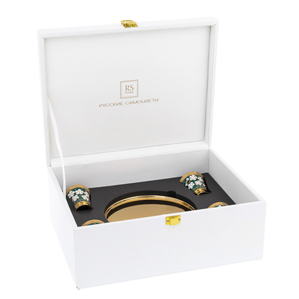 Такой набор уместен в доме ценителя изысканной сервировки, в интерьере приёмной зоны или как часть представительского подарка. Он говорит о тонком вкусе владельца и уважении к традициям, объединяя эстетику Востока и европейскую роскошь. Подобный дар невозможно забыть: он не просто украшает стол — он создаёт настроение, где внимание к деталям равнозначно уважению к гостю.