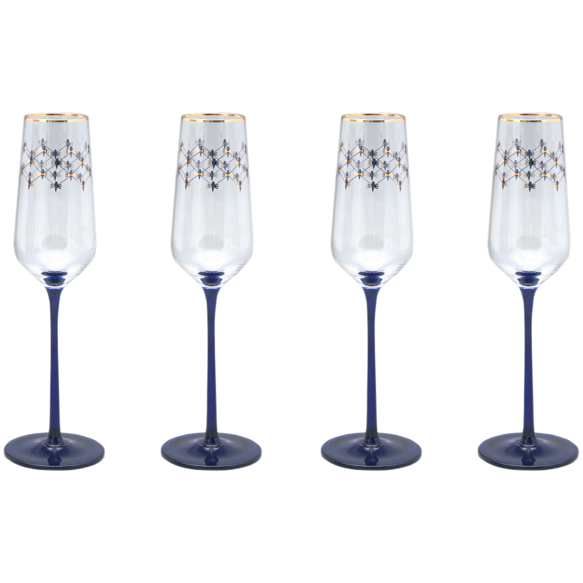Набор бокалов для шампанского "Кобальтовая сетка" на 4 персоны