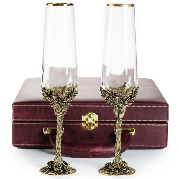 Набор бокалов для шампанского "Нарцисс" на 2 персоны, в кожаном футляре