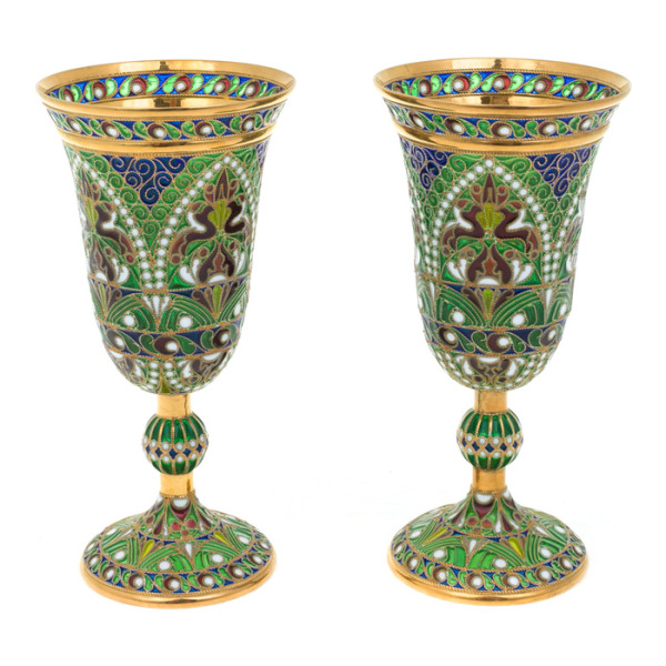 Русские самоцветыБокал для шампанского "Цветы" со сканью (серебро, эмаль)Бокал для шампанского "Цветы" со сканью (серебро, эмаль)Несмотря на то, что искусство создания перегородчатой эмали родом из Византии, именно Российские ювелиры в 19 веке усовершенствовали эту уникальную технику (К. Фаберже, П.А. Овчинников).