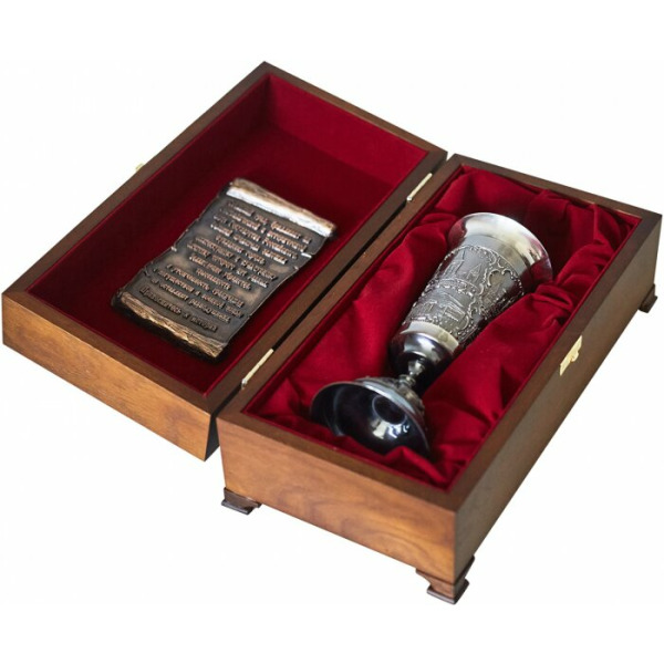 Вашему вниманию мы представляем эксклюзивный подарочный набор "Москва" с целью удовлетворения самых изысканных потребностей. Этот набор – это гармоничное сочетание высококачественных пород дерева – как признак особого статуса изделия, благородных металлов, обработанных вручную и изящно уложенных в один из самых приятных на ощупь материалов – бархат. А самое главное, что обладатель набора не только украсит интерьер своего кабинета или дома, но и сможет использовать его по прямому назначению, например, угостив своих гостей вином из фужера.