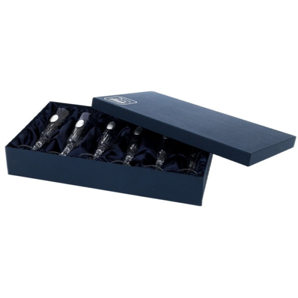 Набор состоит из шести бокалов для шампанского, выполненных из стекла высокого качества. Бокалы имеют классическую форму и тонкие ножки, что придает им легкость и изящество.