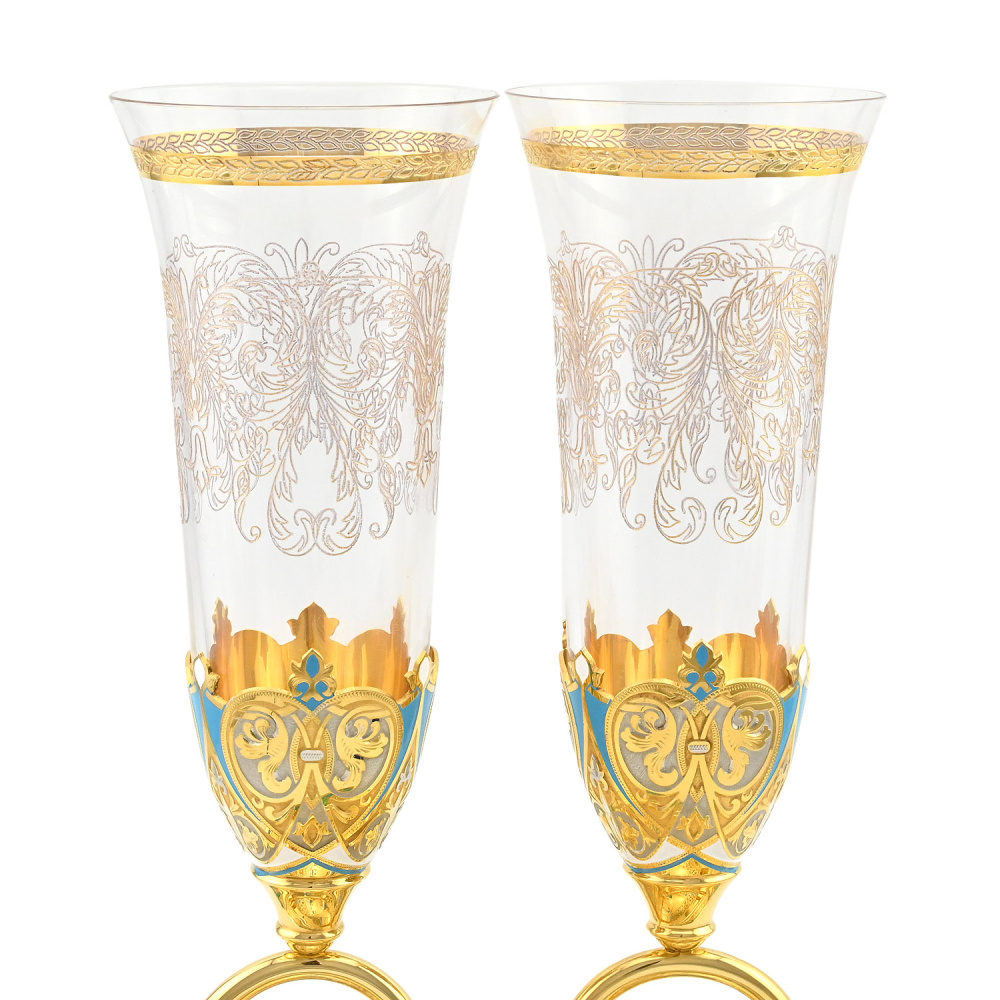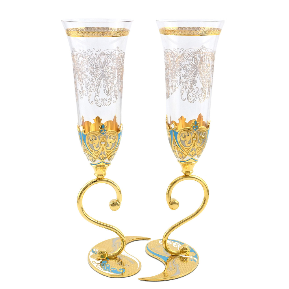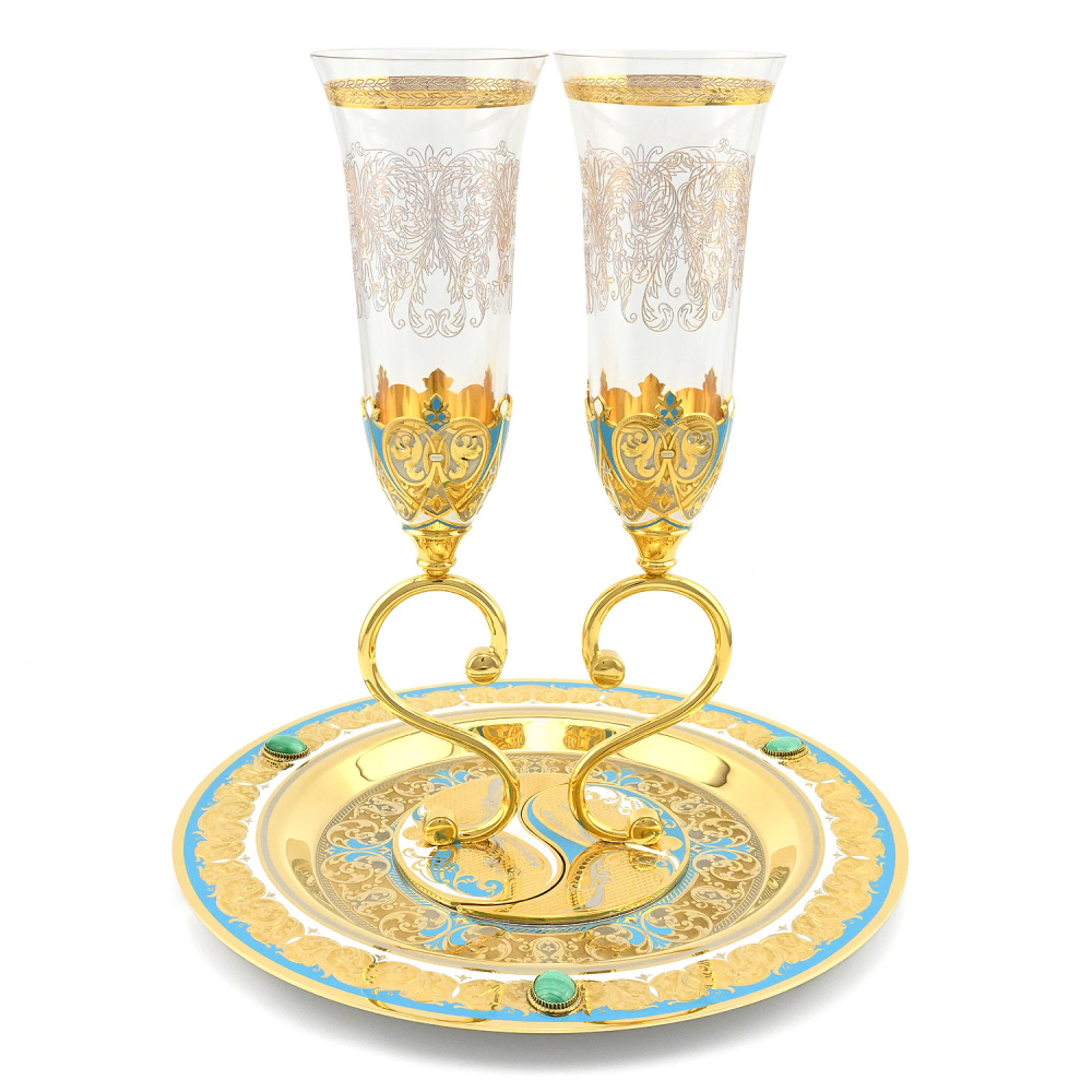 Набор бокалов на подносе "Свадебный" Златоуст, на 2 персоны