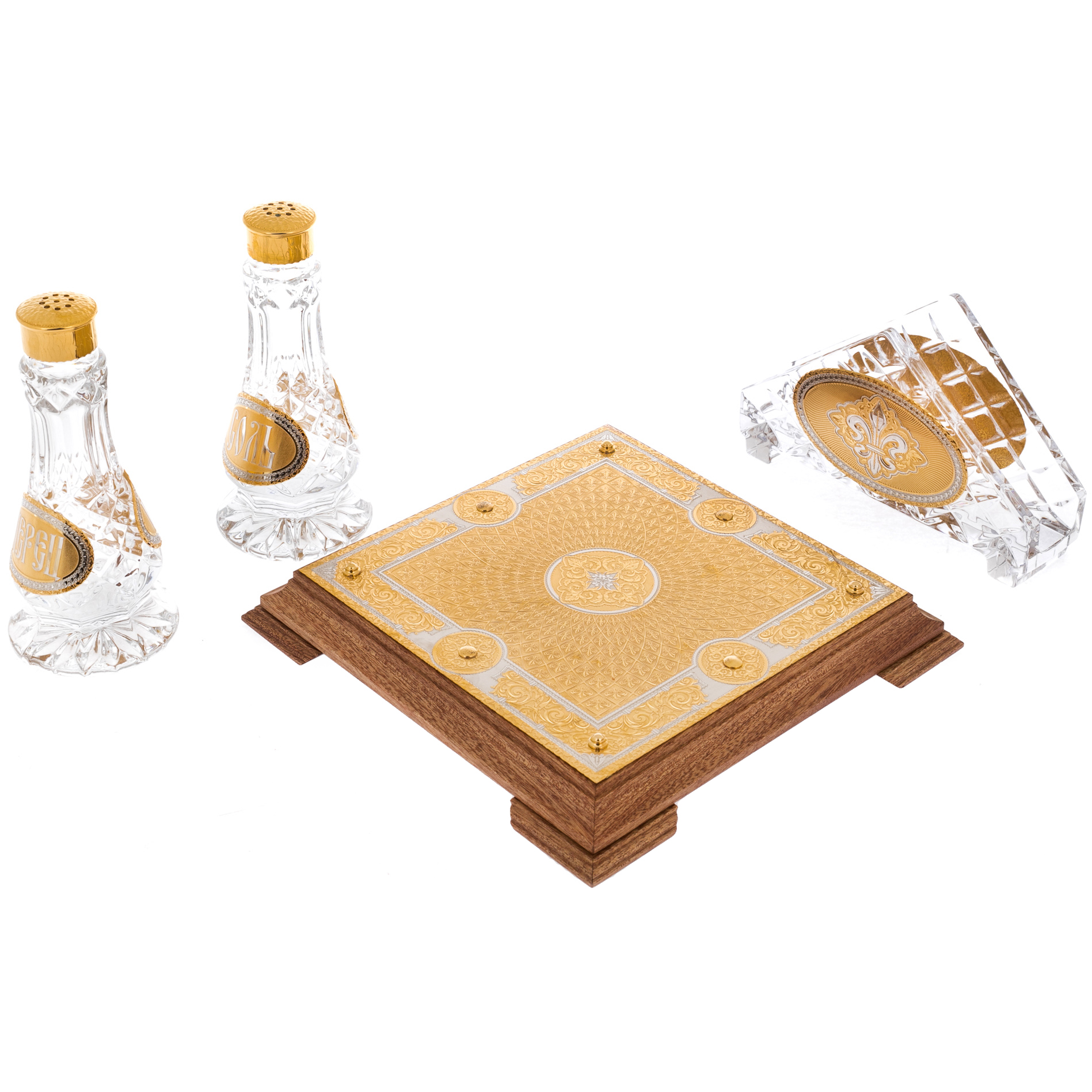 Коллекции изящной посуды от мастеров из Златоуста эффектно декорированы росписью, травлением и золочением. После того, как на полированную поверхность наносится изящный рисунок, изделие сушится в печи и подвергается обработке, после которого рисунок становится рельефным.