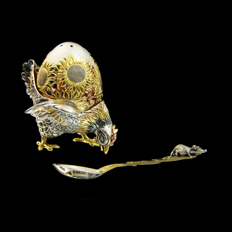 Комплектация:подставка под яйцо "Курочка ряба", солонка "Золотое яичко", чайная ложка "Мышка-Норушка".