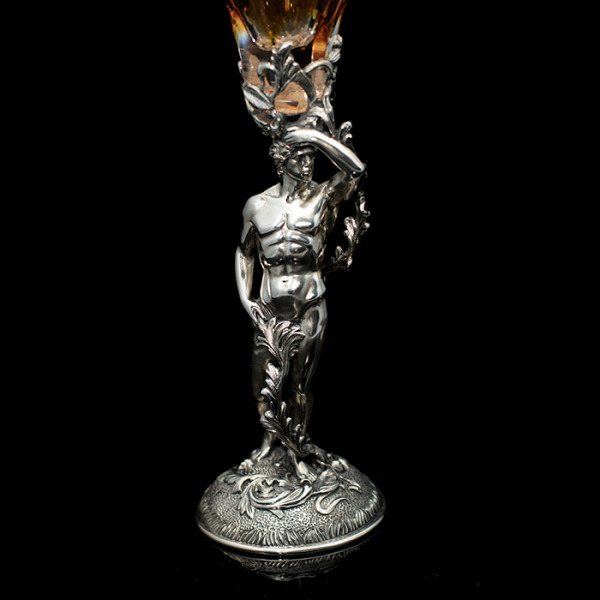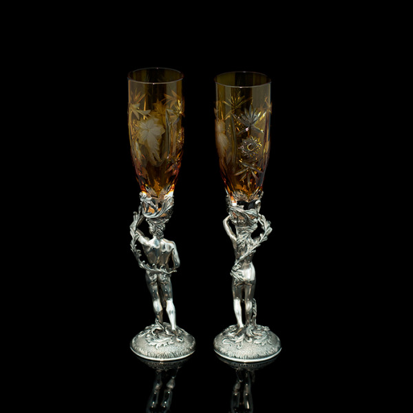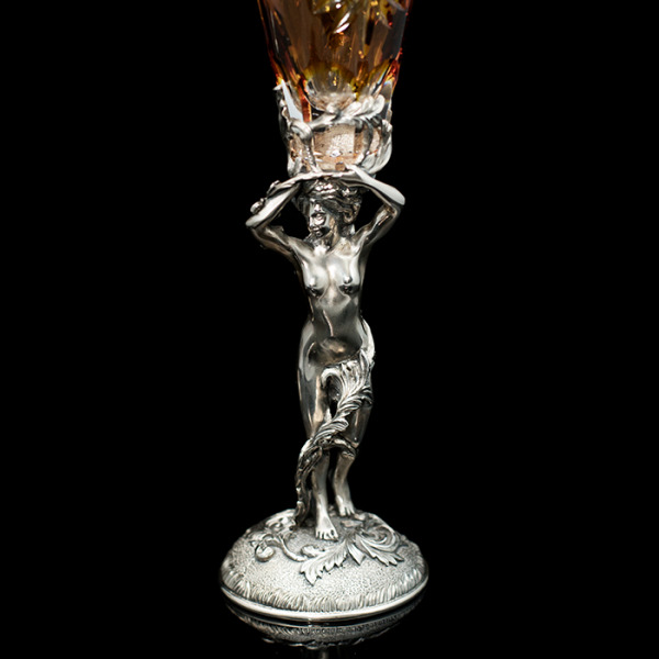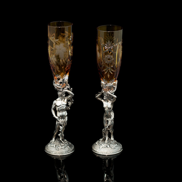 Оригинальные бокалы "Адам и Ева" выполнены из серебра 925 пробы в сочетании с элитным немецким хрусталем Nachtmann.