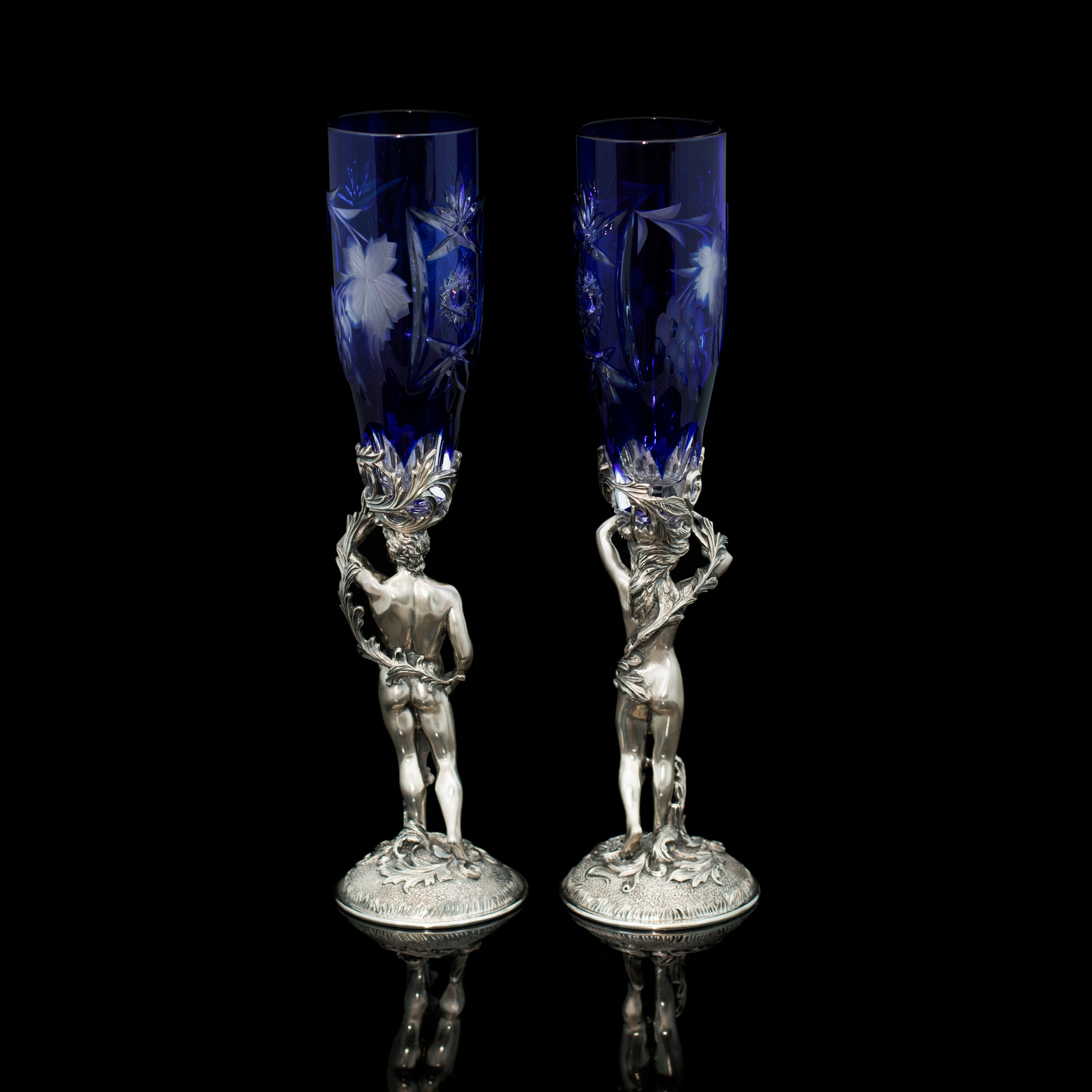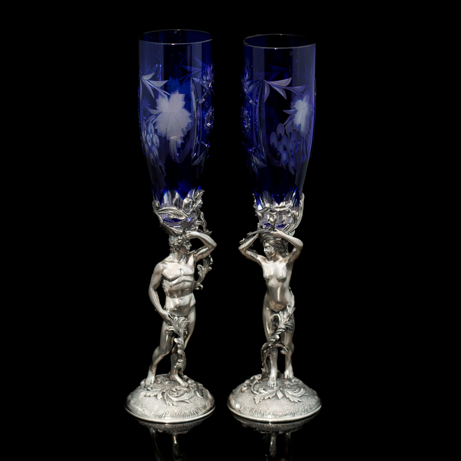 Хрустальные бокалы для вина "Адам и Ева" синие, на 2 персоны