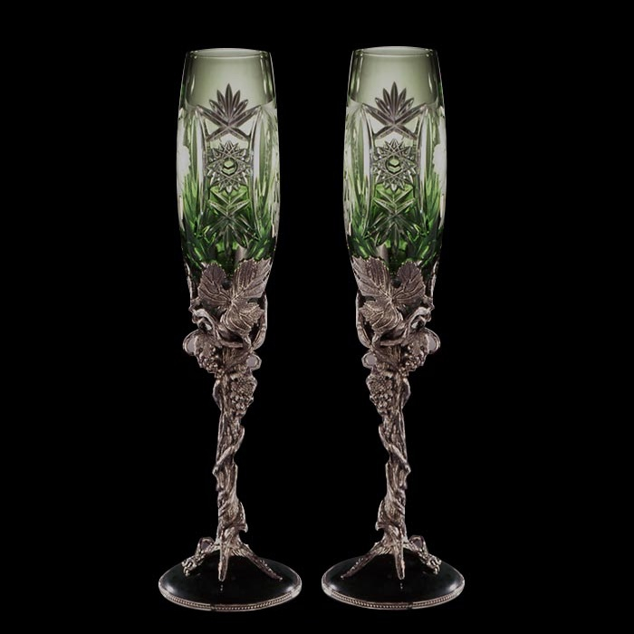 Хрустальные бокалы для вина "Винограная лоза" изумрудные, на 2 персоны