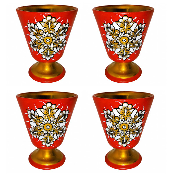 Набор бокалов из липы "Снежинки" на 4 персоны, хохлома