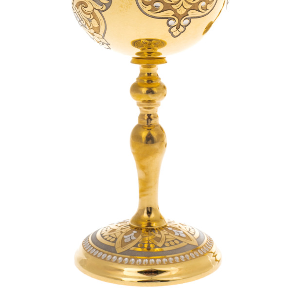 Золотой блеск чарок кажется вечным, как и сама ценность момента, когда они поднимаются для тоста. Взяв в руки этот великолепный предмет, человек ощущает, что держит не просто кубок для вина, а ключ к миру роскоши и власти, миру, где каждое мгновение становится торжеством, а каждый глоток – символом величия.