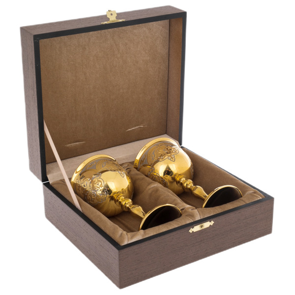 Вино, налитое в набор для вина "2 чарки", кажется, впитывает в себя блеск золота и силу традиции, превращаясь в напиток настоящей власти и величия. Каждая деталь этого комплекта словно шепчет о бессмертной красоте. Чарки, сверкающие благородным золотом, приглашают погрузиться в атмосферу истинного изобилия и роскоши. Их высокая ножка напоминает о непоколебимой стойкости и изысканности, а золото, покрывающее поверхность, словно отражает свет успеха, подчеркивая высокий статус владельца.