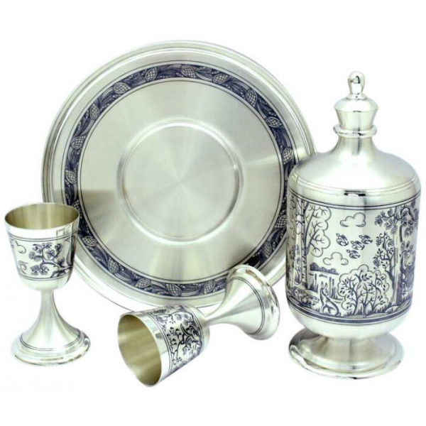 Северная черньНабор для вина из серебра "Росток" на 4 персоныНабор для вина из серебра "Росток" на 4 персоныВеликоустюгский завод «Северная чернь» – уникальное предприятие народного художественного промысла, сложившегося в городе Великий Устюг в ХVII веке, сохраняющее и развивающее трехсотлетние традиции древнерусского искусства чернения по серебру, не имеющего аналогов в современном ювелирном искусстве. Все изделия производятся традиционным для народного художественного промысла ручным способом, с соблюдением в технологии основных приемов старинных мастеров.