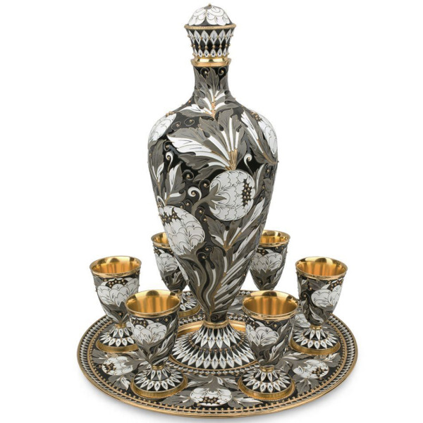 Этот набор идеально подойдет как для элитных коллекционеров, так и для ценителей изысканных подарков. Он станет настоящим украшением интерьера, добавляя в атмосферу роскошь и утонченность. Бокалы и кувшин из серебра, украшенные перегородчатой эмалью, будут достойным акцентом в любом доме, символизируя изысканность, стиль и внимание к деталям.