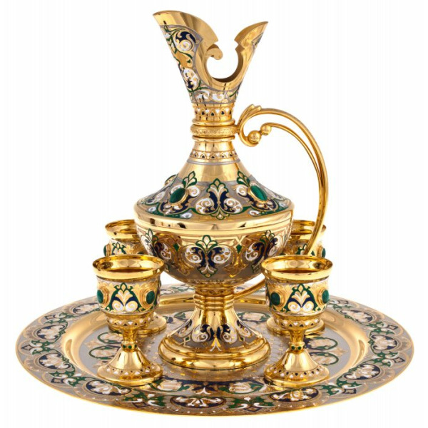 Этот набор идеально подойдет как для элитных коллекционеров, так и для ценителей изысканных подарков. Он станет настоящим украшением интерьера, добавляя в атмосферу роскошь и утонченность. Бокалы и кувшин из серебра, украшенные перегородчатой эмалью, будут достойным акцентом в любом доме, символизируя изысканность, стиль и внимание к деталям.