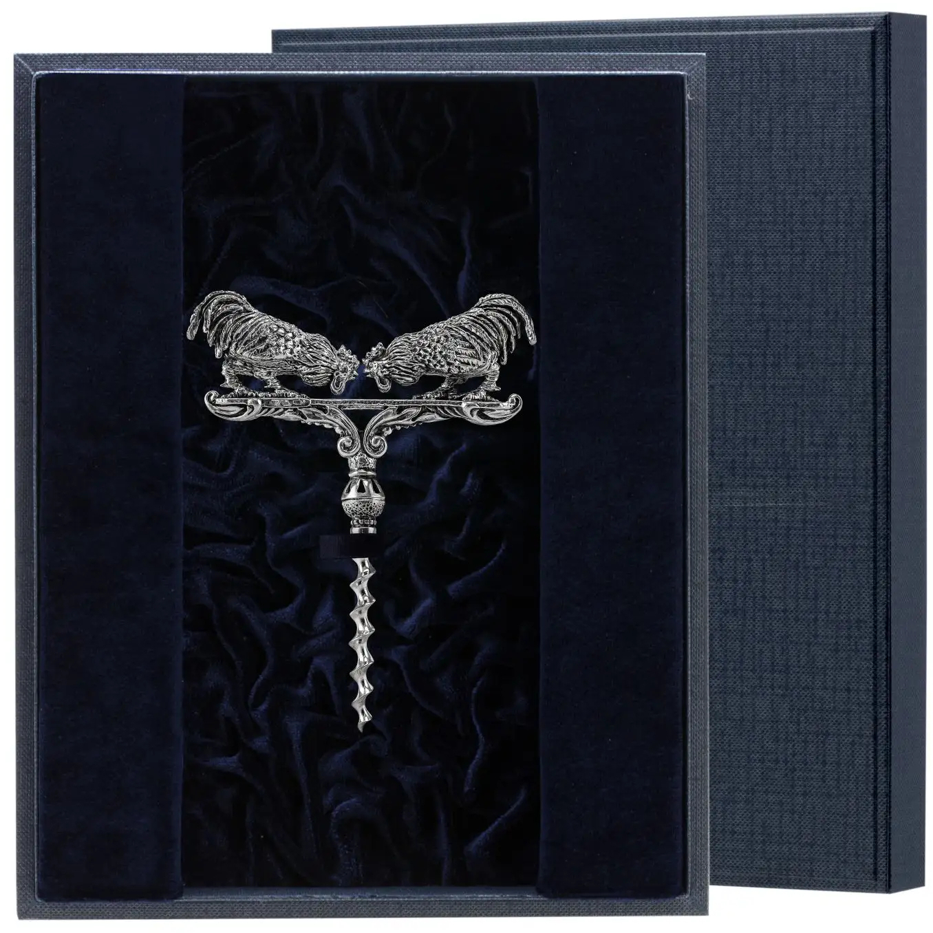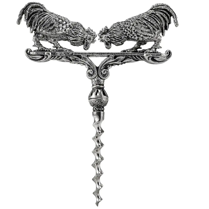 Штопор серебряный "Петушиные бои" с чернением в футляре