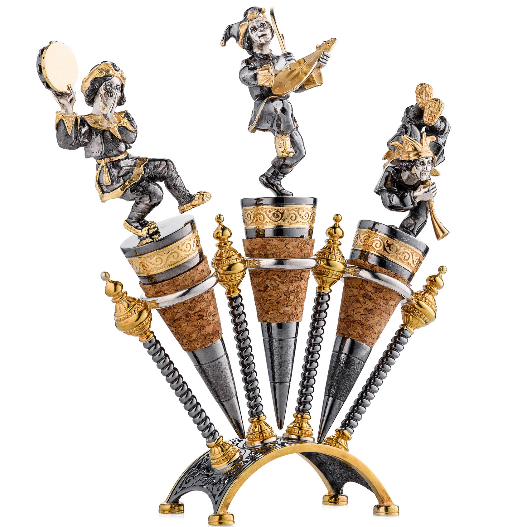Набор серебряных пробочников на подставке «Скоморохи» 3 штуки
