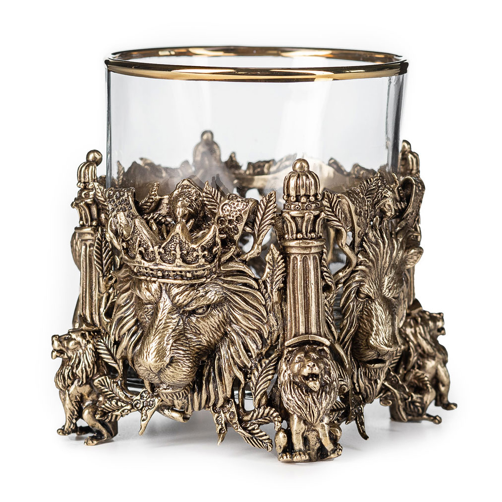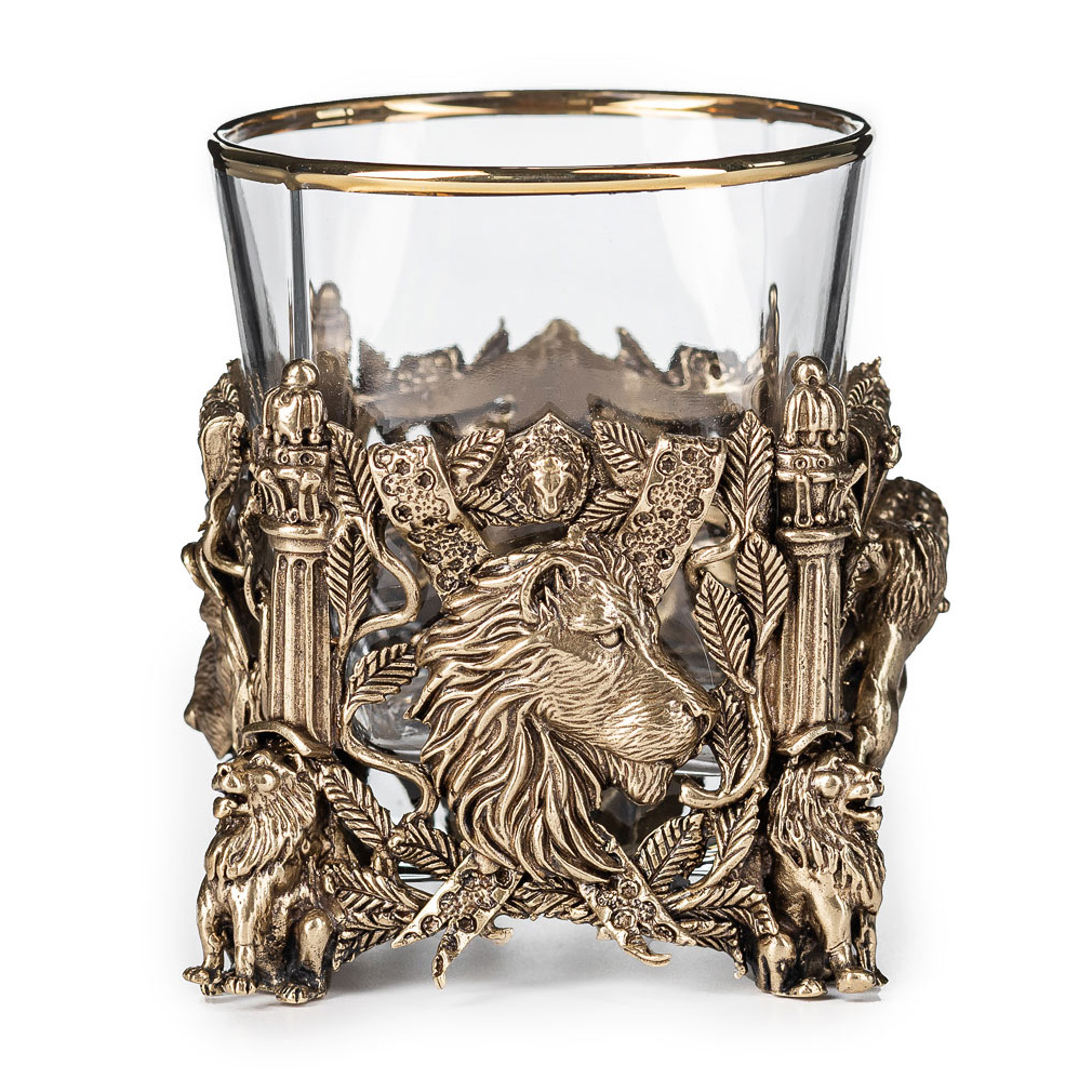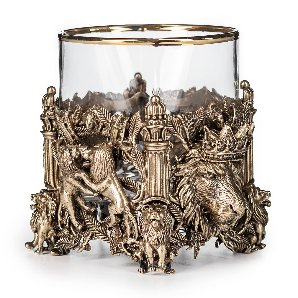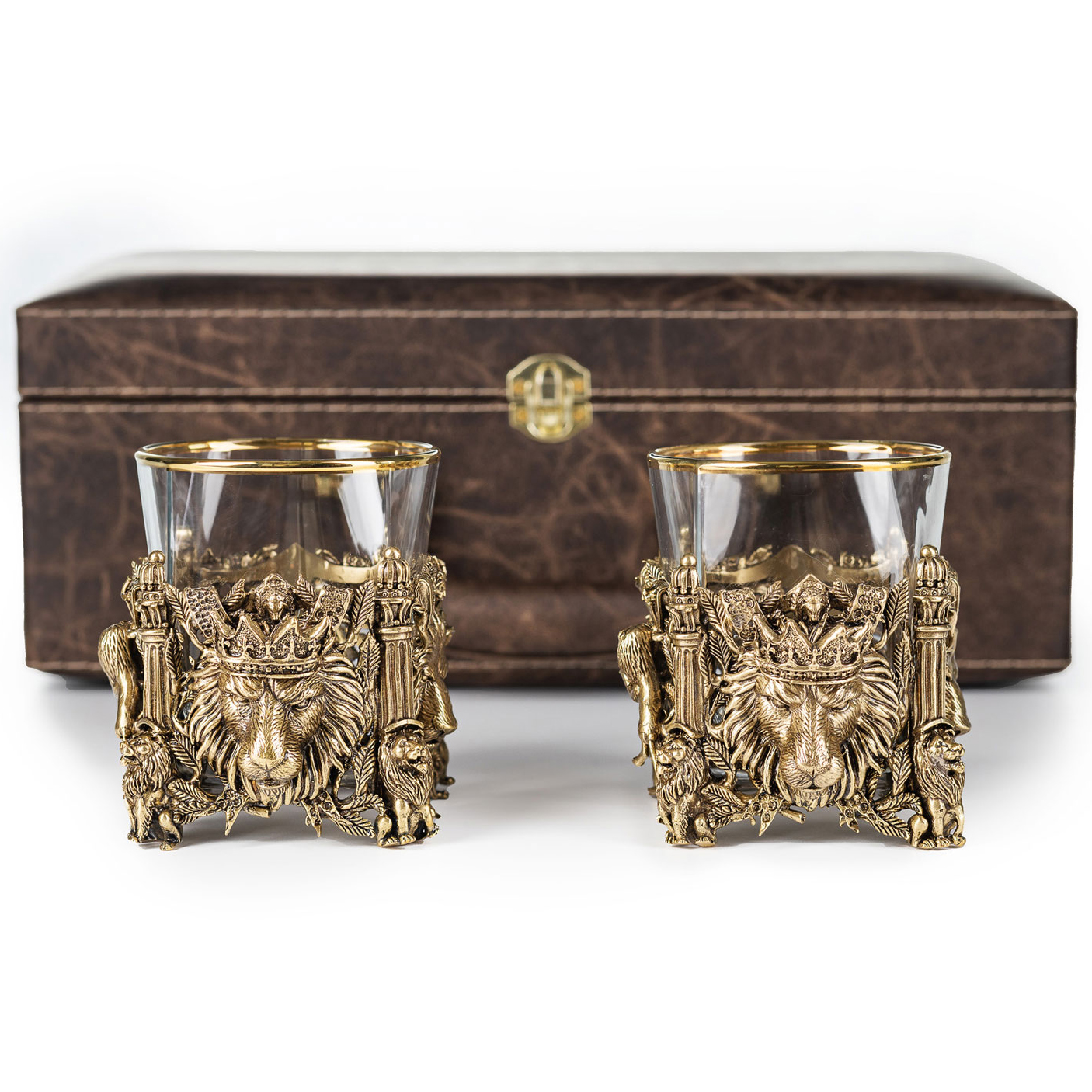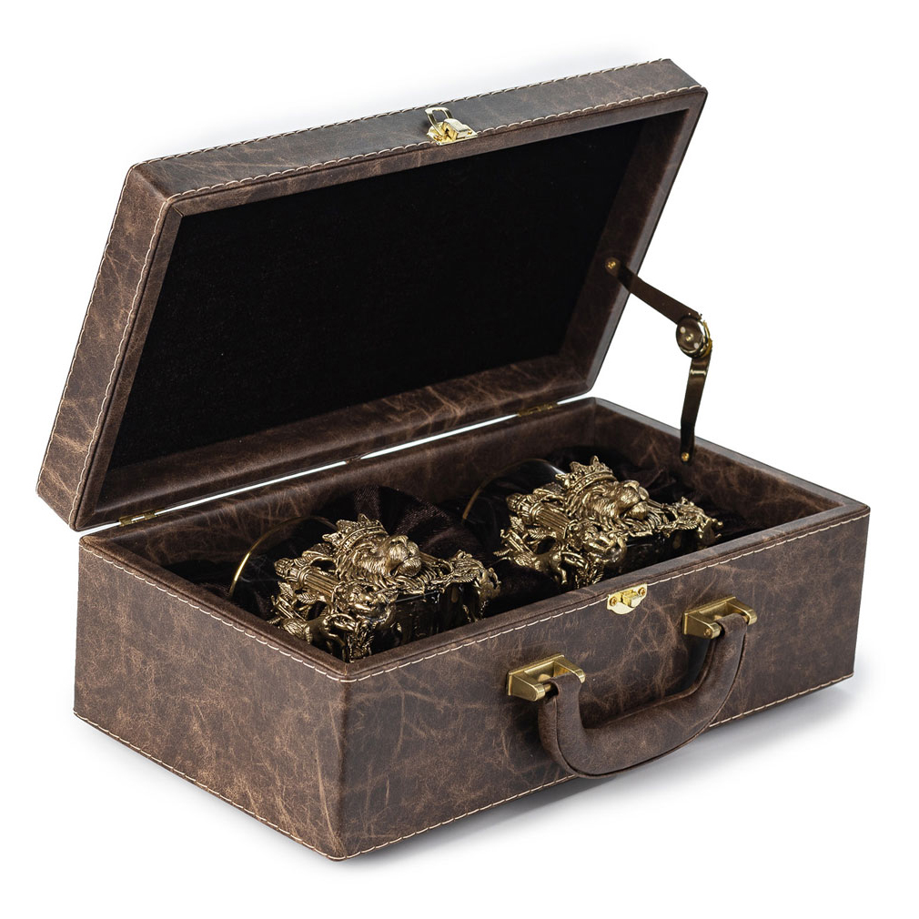 Набор стаканов для виски "Лев VIP" на 2 персоны, в кожаном футляре