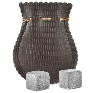 Изделия выполнены из утолщённого хрусталя со внутренним свечением, придающим напитку дополнительную глубину. Неровная, будто закрученная грань подчёркивает индивидуальность формы бокалов, придавая им характер скульптурной динамики. Штоф отличается строгими пропорциями и увесистой крышкой, плотно фиксирующей содержимое. Для охлаждения предусмотрены шлифованные натуральные камни — они сохраняют вкус напитка неизменным, не разбавляя его водой, и придают ритуалу подачи нотки основательности.