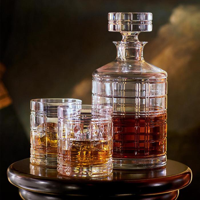 Дополняют ансамбль бокалы Hudson, чья правильная форма позволяет максимально раскрыть букет виски. Культовый клетчатый узор Hudson Plaid, характерный для стиля Ralph Lauren, придает набору особую элегантность. Каждая огранка, выполненная из хрусталя высокой четкости, великолепно преломляет свет, создавая игру бликов и отражений.