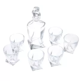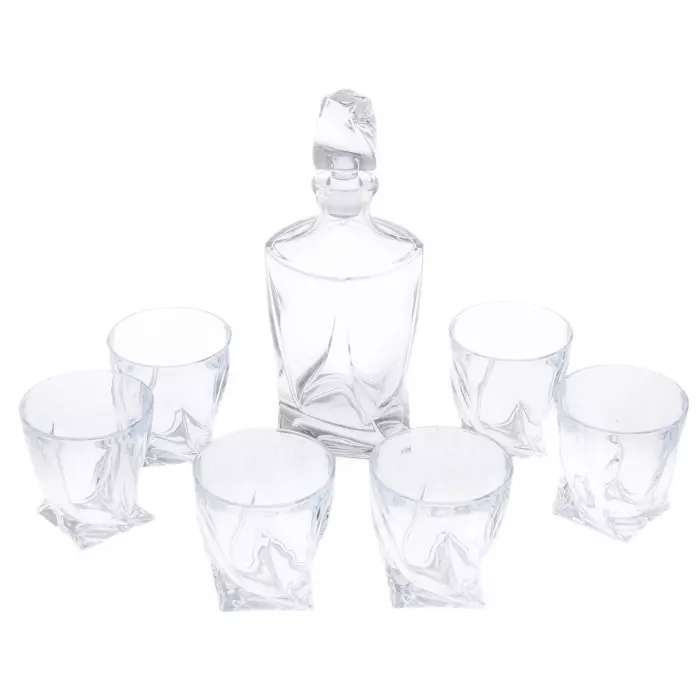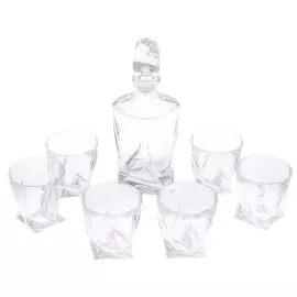 Набор для виски «Статус» на 6 персон, дополненный футляром из натуральной кожи, представляет собой выверенное сочетание лаконичной геометрии и подчеркнутой респектабельности, ориентированное на аудиторию, для которой важны детали и безупречное качество исполнения. В состав входят массивный графин с притёртой пробкой и шесть бокалов, выполненных в едином художественном решении: каждая форма словно собрана из мягко переломленных граней, создающих ощущение движения стекла и игры света. Композиция адресована тем, кто воспринимает процесс подачи напитка как часть статуса и стремится окружать себя предметами, подчеркивающими уверенность и вкус.