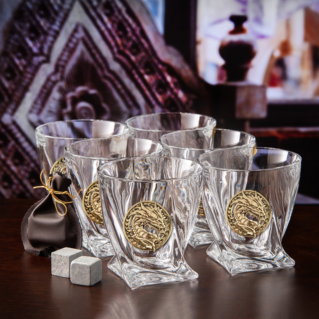 Набор для виски "Квадро - Дракон" на 6 персон, с ключницей, в черной упаковке