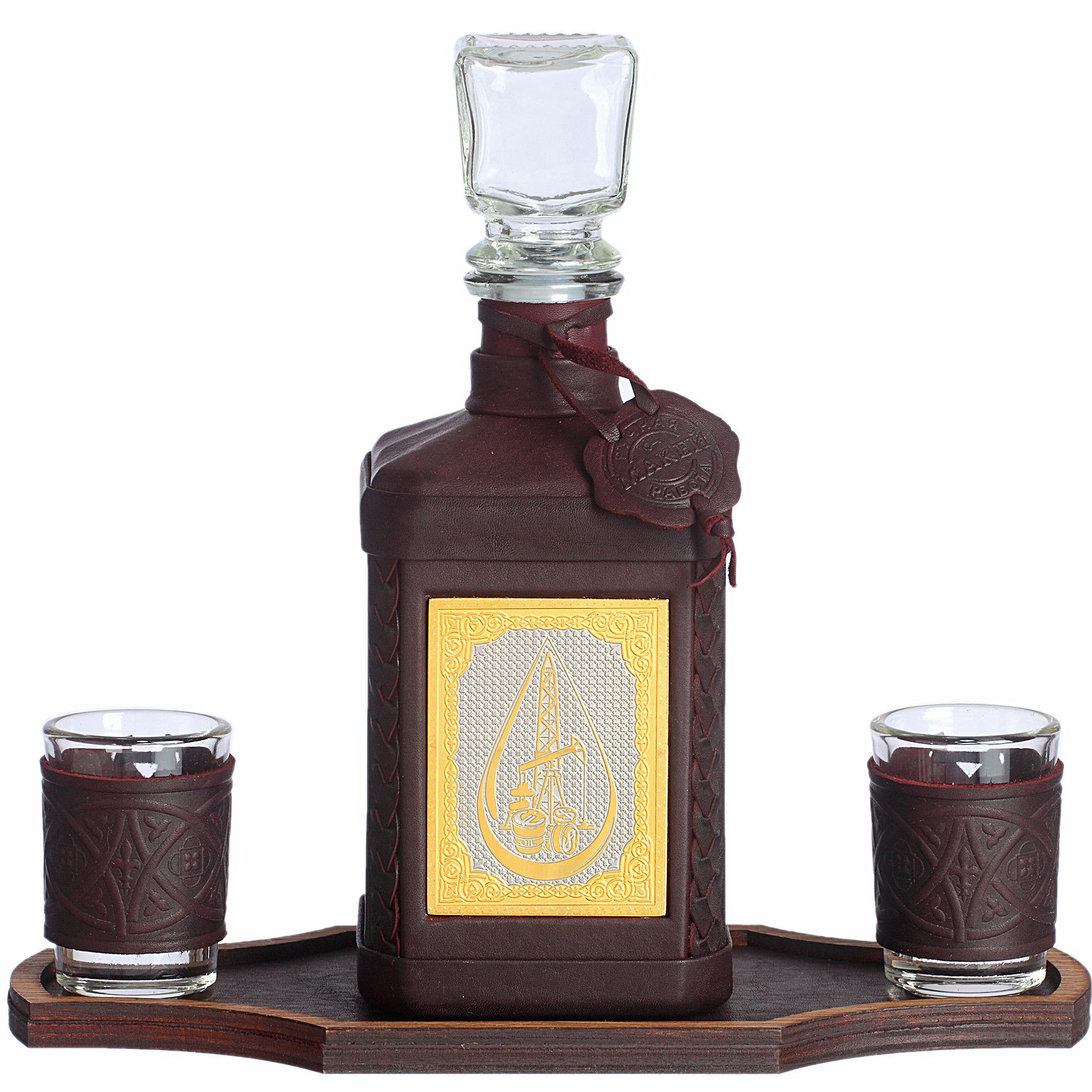 Графин в кожаном переплете "Нефтегаз-3" с накладкой