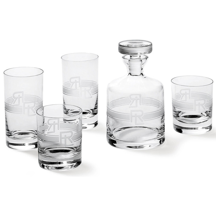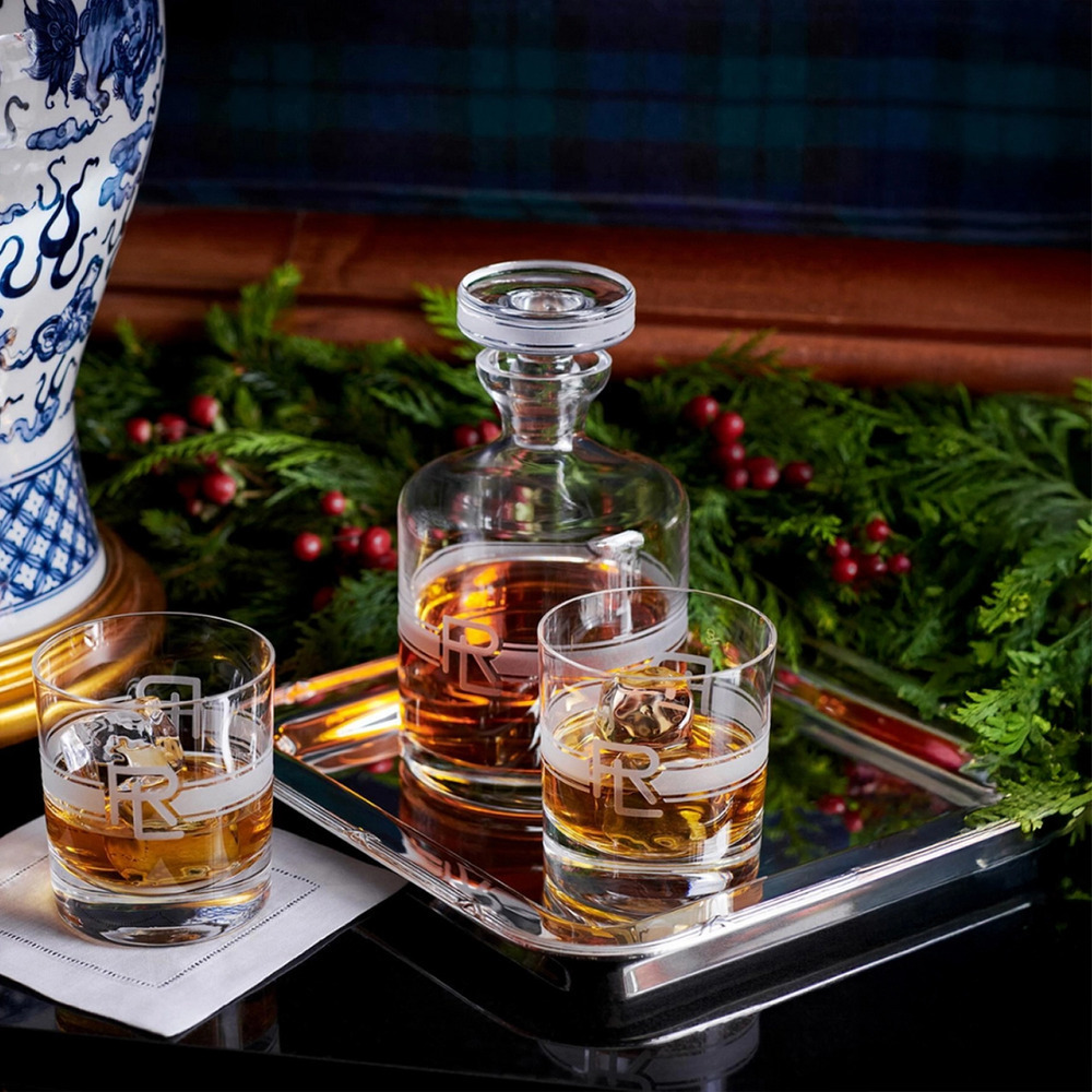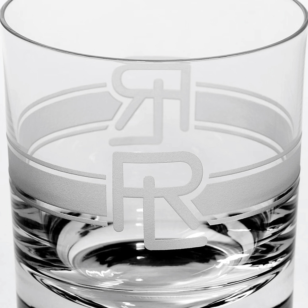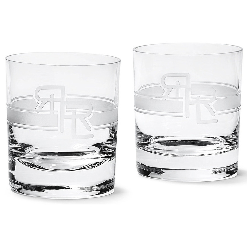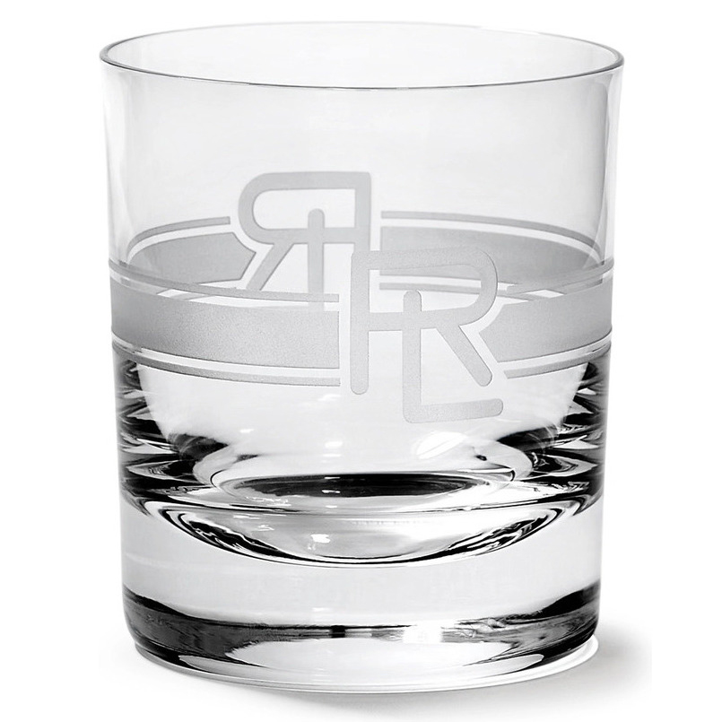 Комплект из двух бокалов для виски, серия Ashton. Характерная особенность дизайна — большой фактурный логотип RL. Предметы бренда Ralph Lauren Home — классика на все времена.