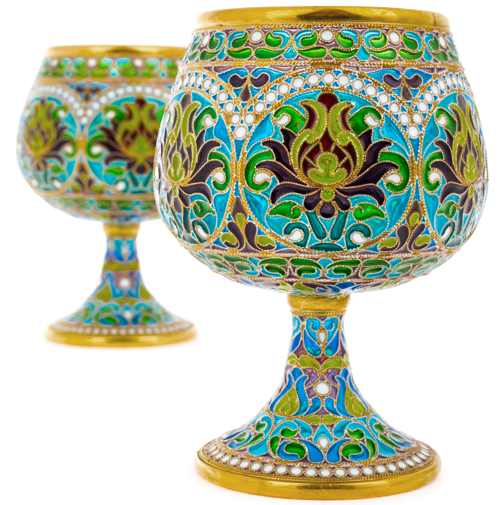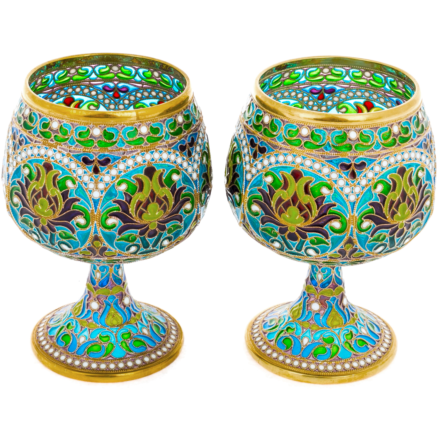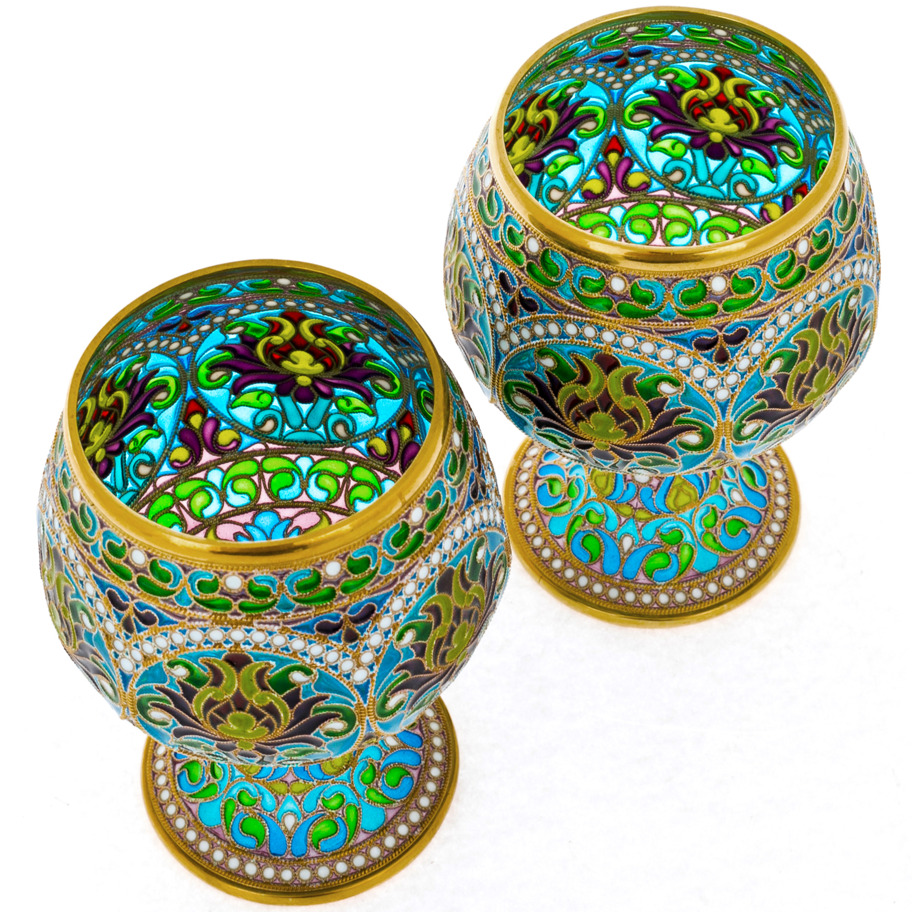 Набор бокалов для виски "Букет" с голубыми витражными эмалями, на 2 персоны