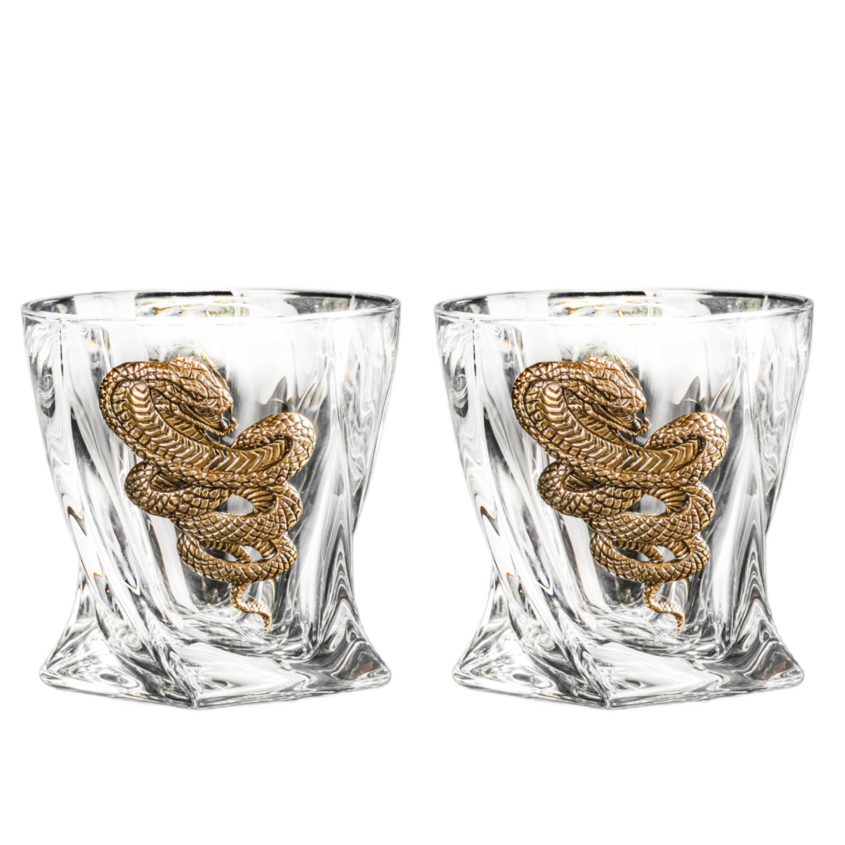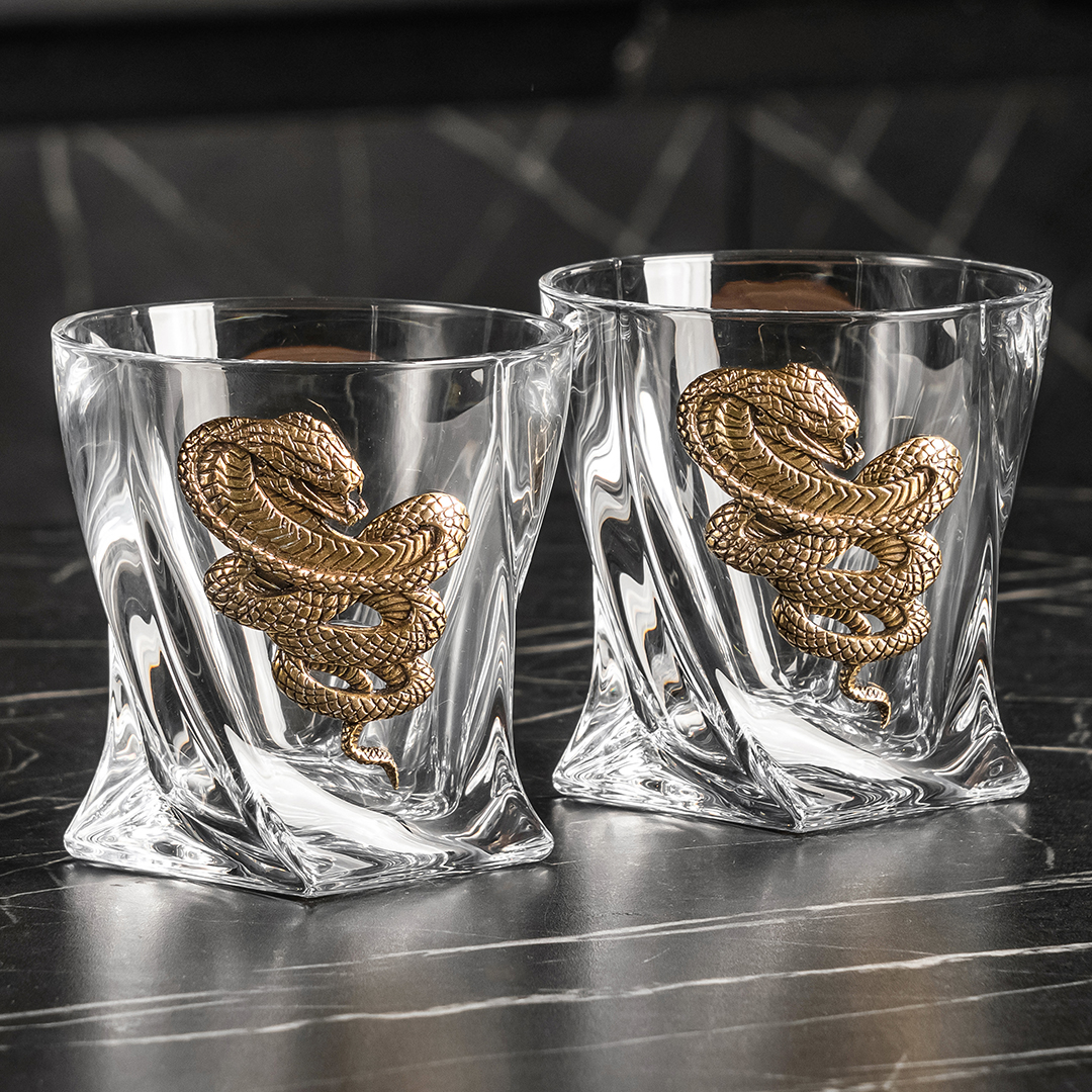 Набор выполнен из высококачественного стекла и украшен изящными фигурами змей, символизирующих мудрость, вечность и обновление. Змея добавляет ему не только декоративности, но и глубинного символизма, делая его особенным подарком для знаковых событий и памятных дат.