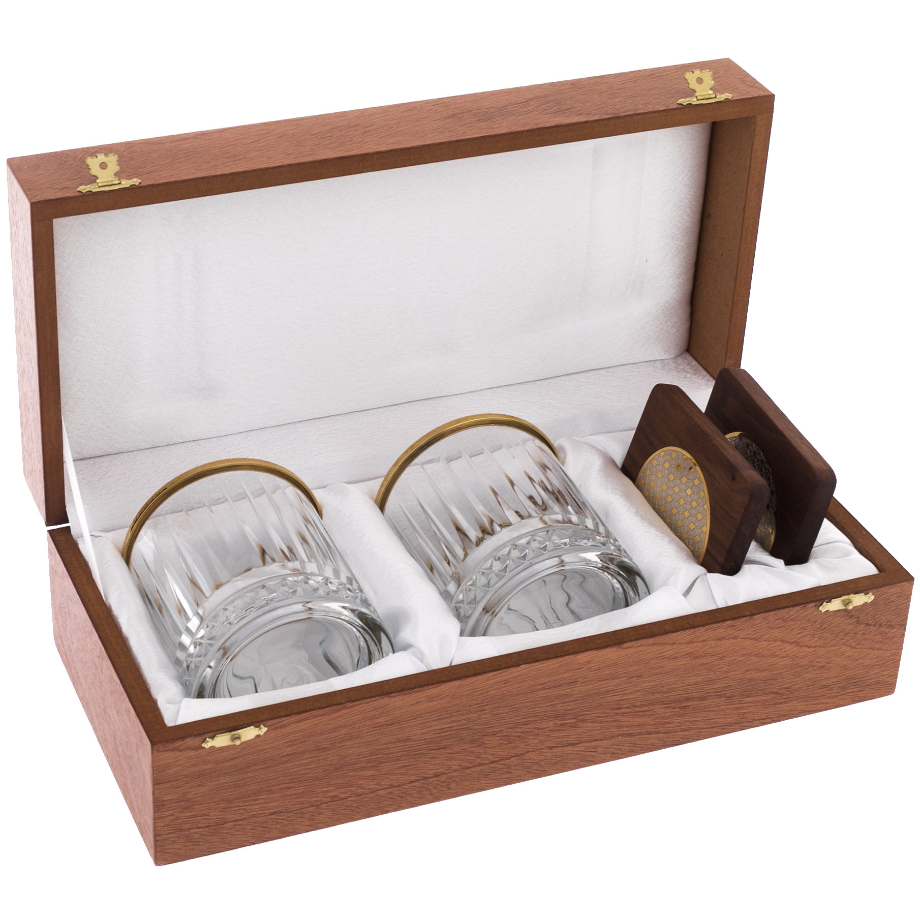 Бокалы для виски в деревянном футляре станут отличным подарком руководителю и чиновнику на любое торжество. Изысканные и элегантные бокалы ручной работы станут настоящим украшение Вашего стола и царским подарком для любого мужчины. Великолепное сочетание стекла первоклассного качества, которое не тускнеет при мытье и не теряет тонкости звона, и ювелирно выполненного художественного литья.