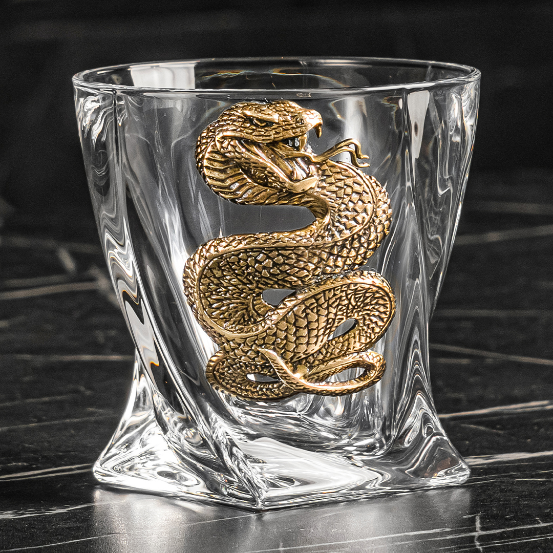 Набор выполнен из высококачественного стекла и украшен изящными фигурами змей, символизирующих мудрость, вечность и обновление. Змея добавляет ему не только декоративности, но и глубинного символизма, делая его особенным подарком для знаковых событий и памятных дат.