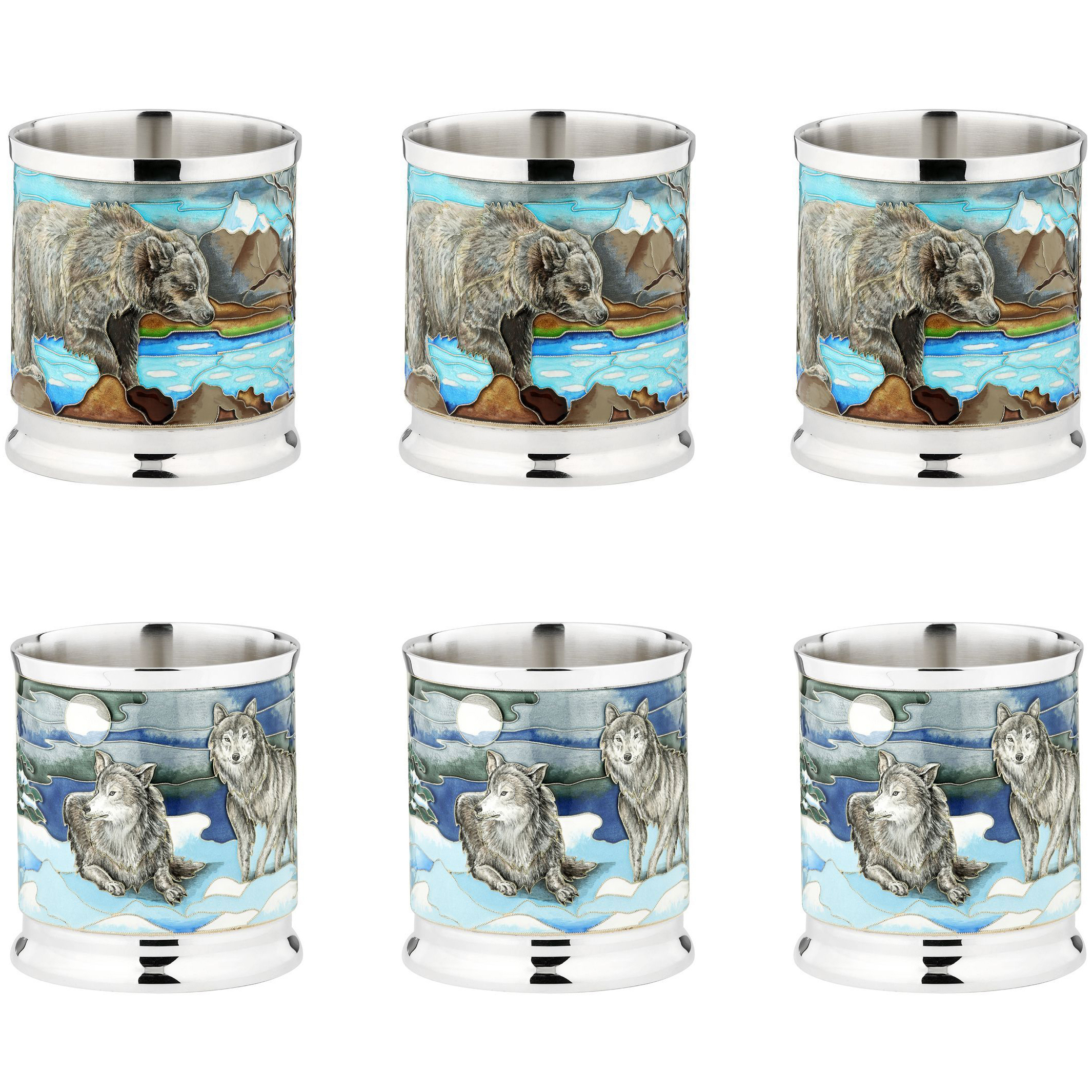Набор серебряных бокалов для виски "Медведь и волки" на 6 персон