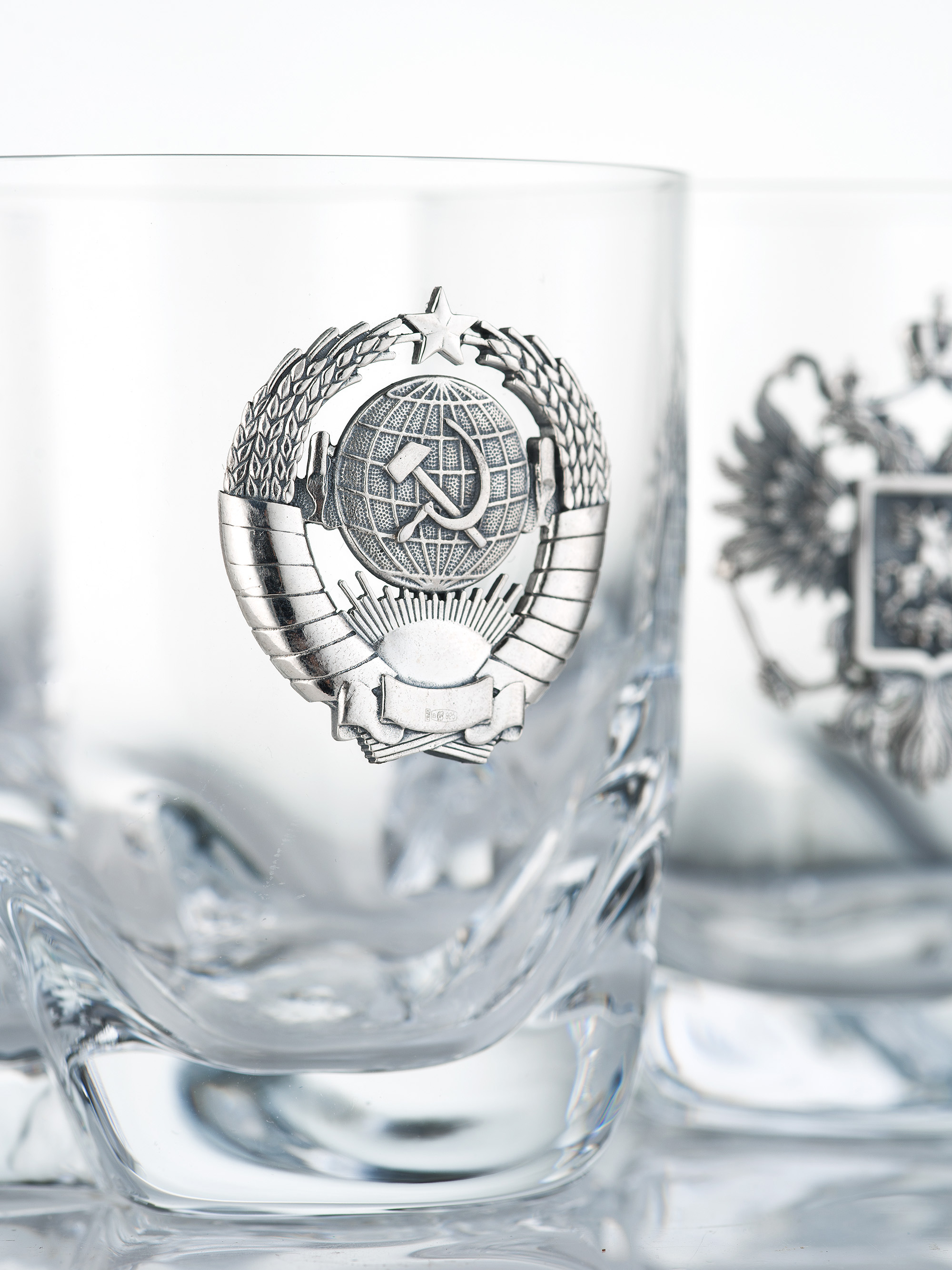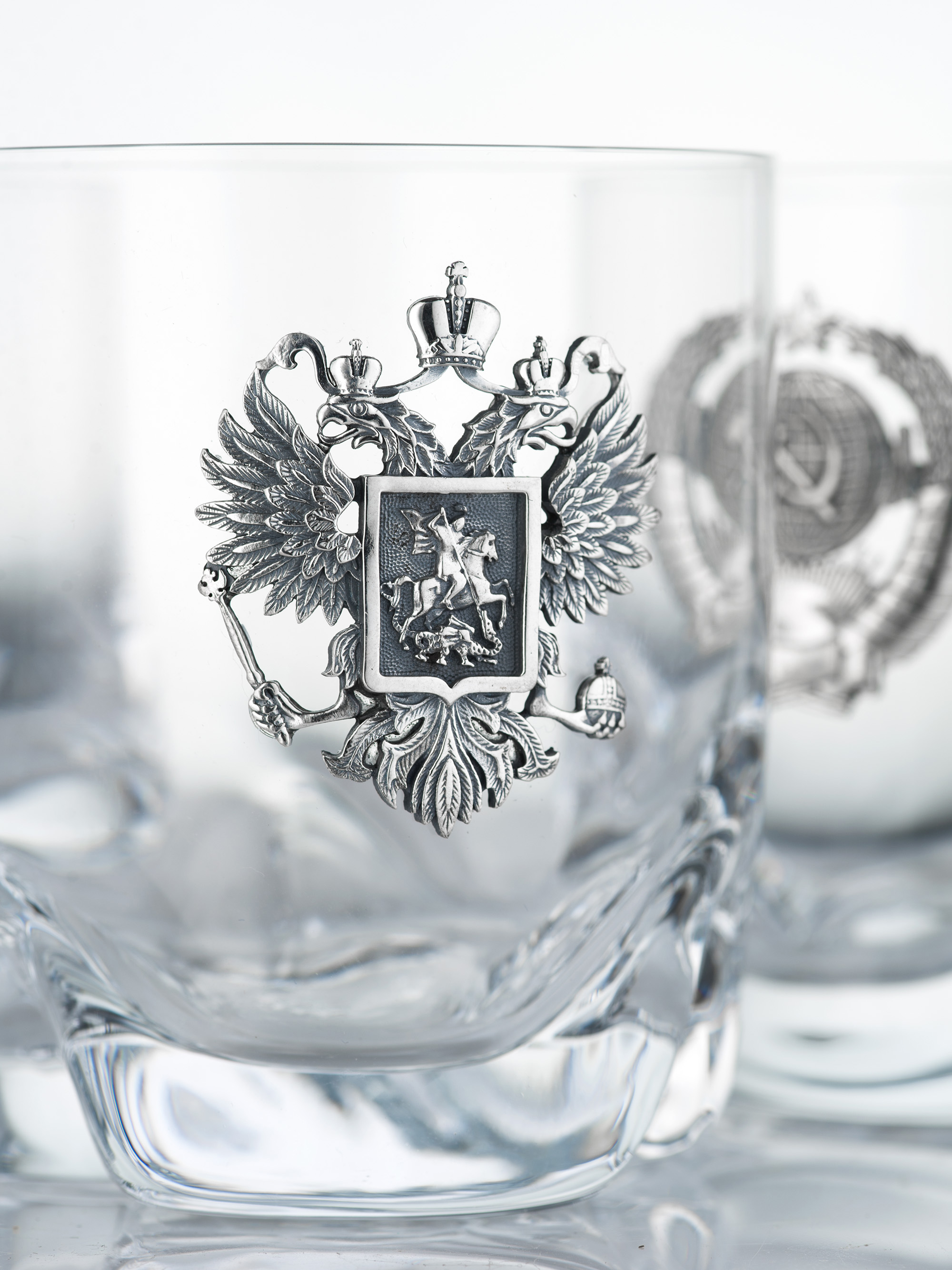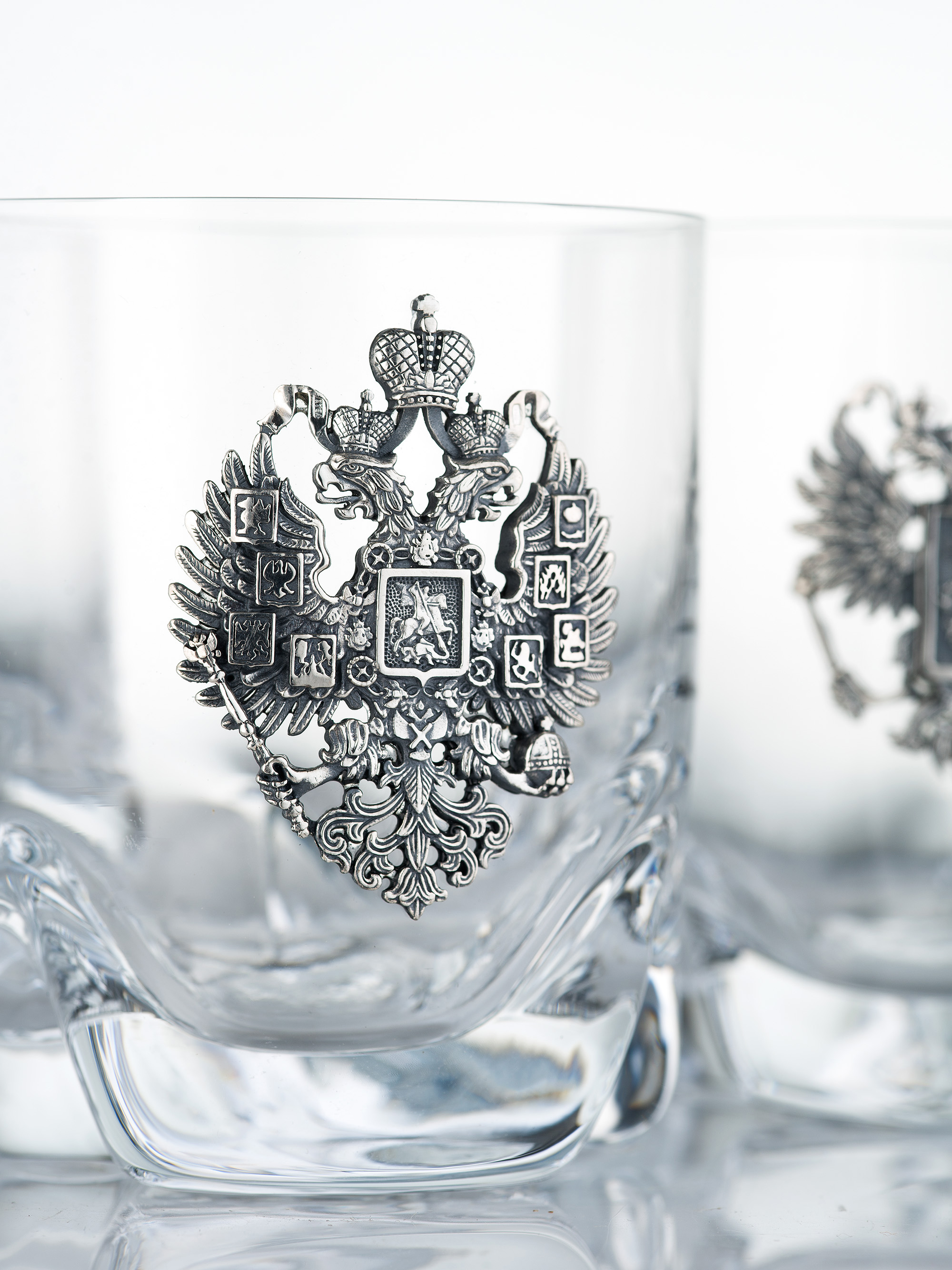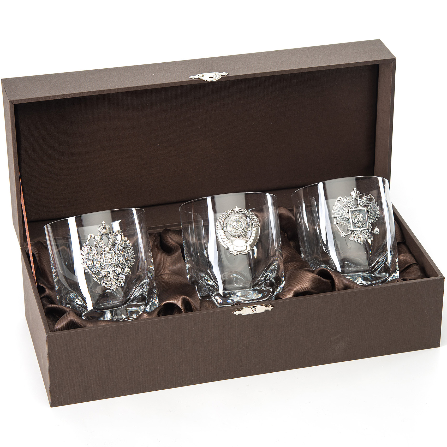 Набор стаканов для виски "Эпохи" с серебряными накладками, на 3 персоны