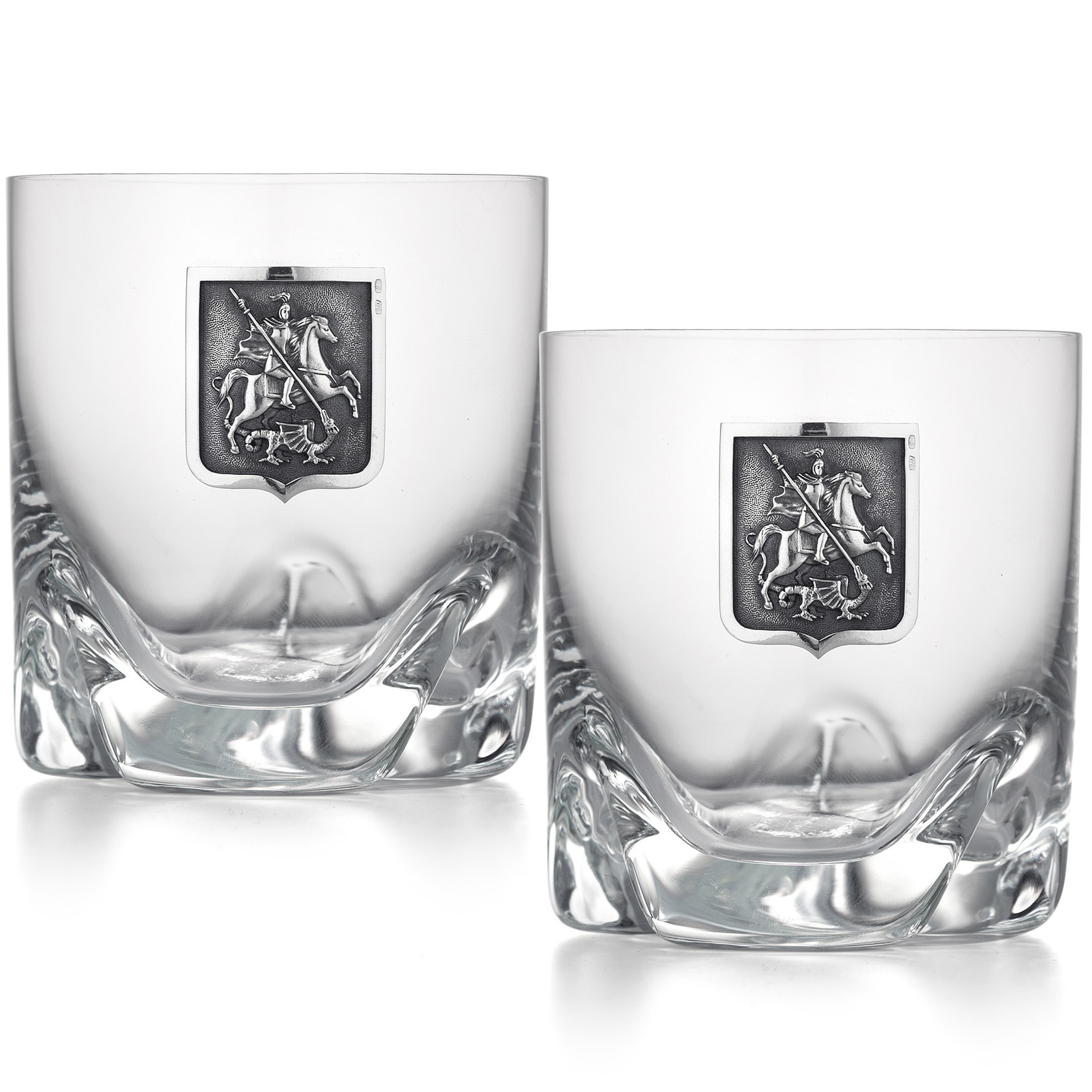 Набор стаканов для виски "Москва" с серебряными накладками, на 2 персоны