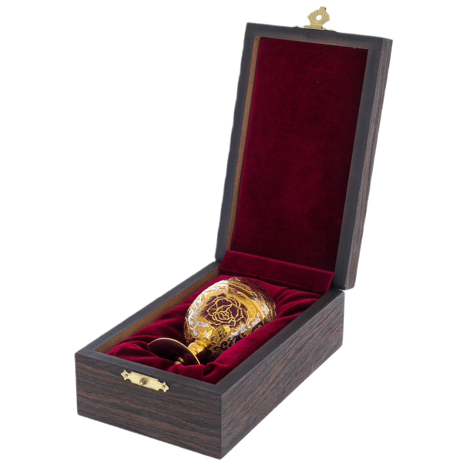 Эксклюзивная яйцо-рюмка, изготовленное из латуни и украшеное орнаментами невообразимой красоты. Такой подарок наверняка станет любимым сувениром получателя такого необычного подарка.