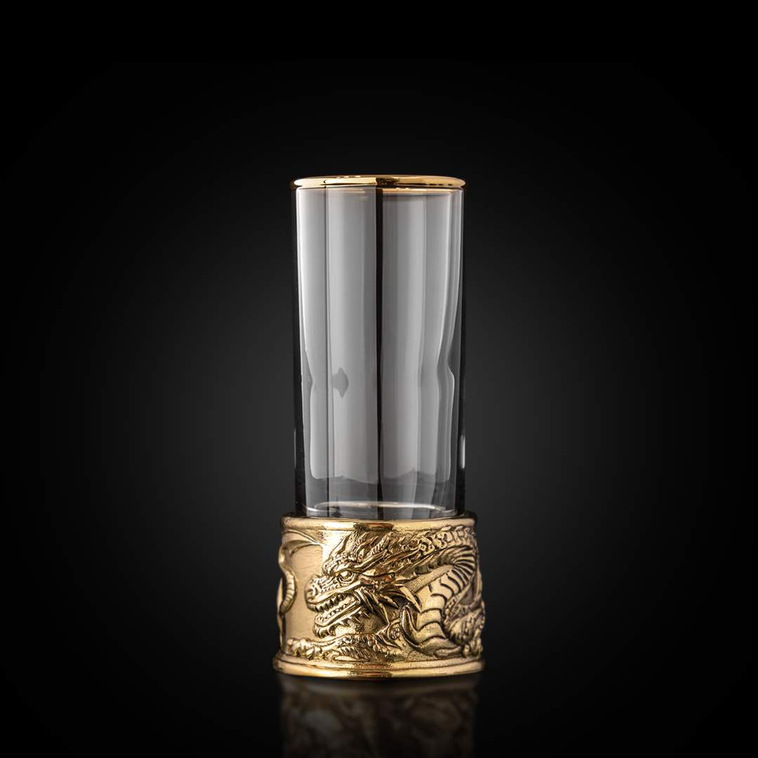 Роскошный подарочный набор, который добавит изюминку в ваши вечеринки! Представляем удачное сочетание роскошных бокалов для виски и стопок в нашем наборе из 4-х стопок "Дракон" и 2 бокалов для виски Дракон. Красивый и стильный набор, изготовлен из высококачественного стекла Богемия и латунных элементов "Дракон".
